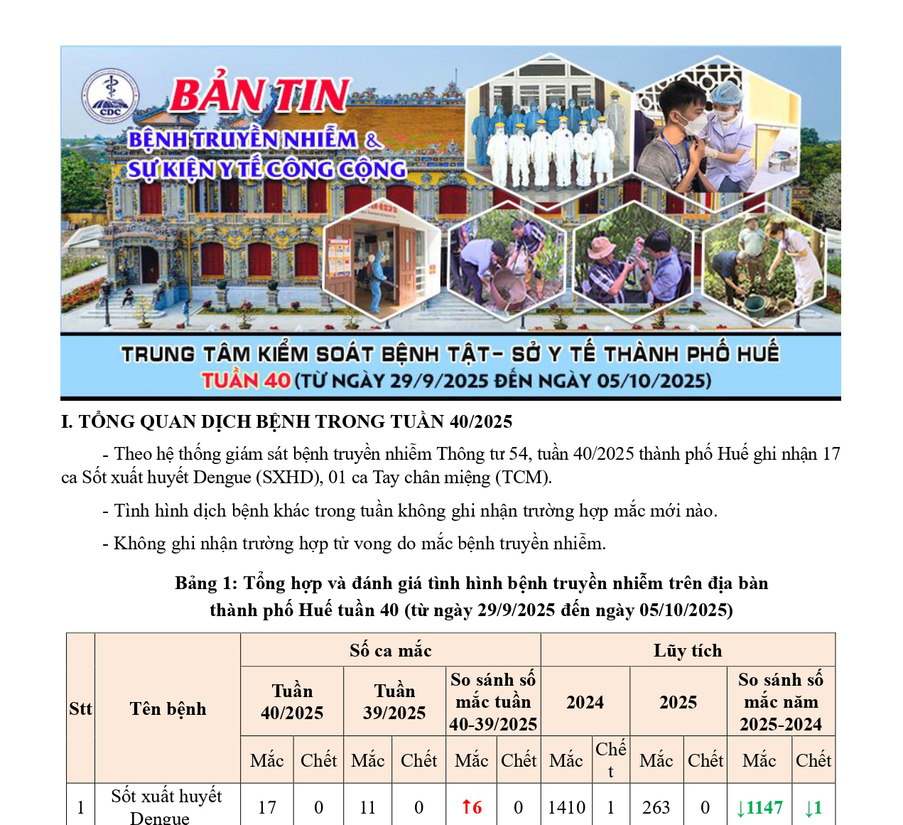 Bản tin bệnh truyền nhiễm và sự kiện y tế công cộng - Tuần 40 (từ ngày 29/9/2025 đến ngày 05/10/2025) 14:06 10/10/2025