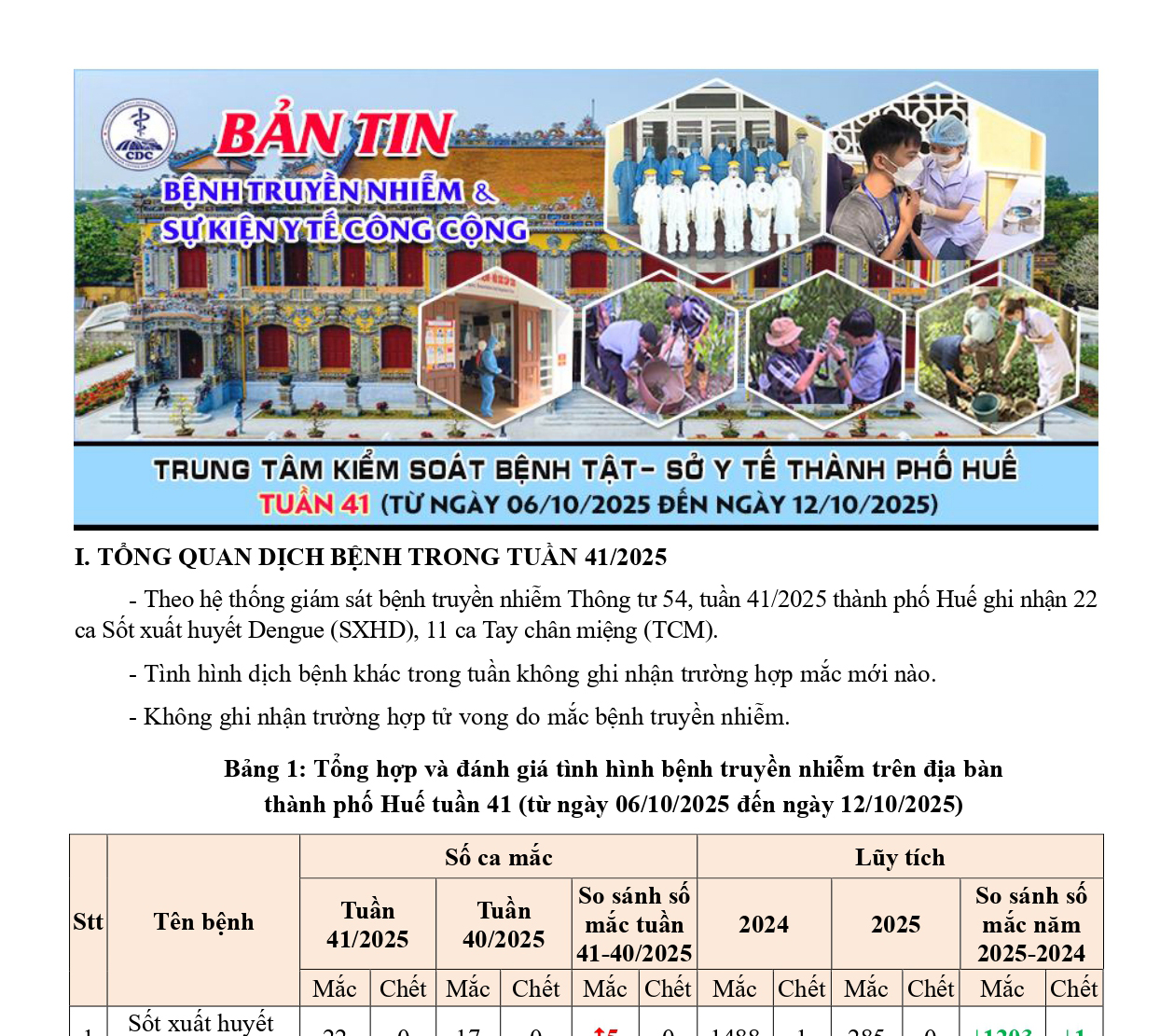 Bản tin bệnh truyền nhiễm và sự kiện y tế công cộng - Tuần 41 (từ ngày 06/10/2025 đến ngày 12/10/2025) 11:39 17/10/2025