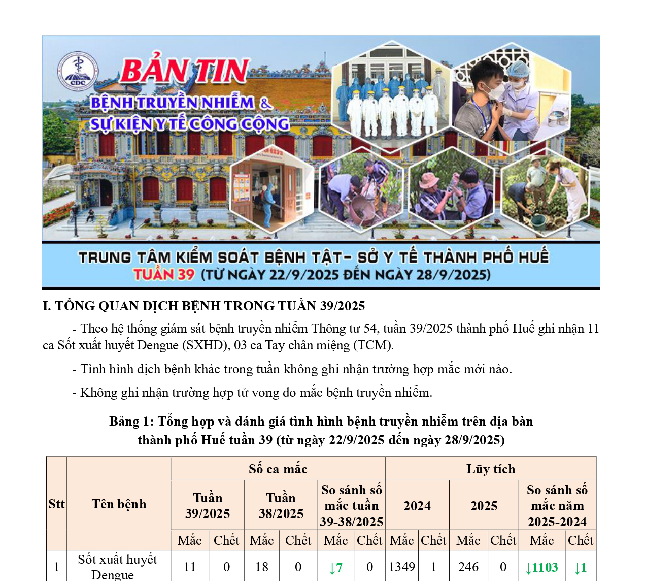 Bản tin bệnh truyền nhiễm và sự kiện y tế công cộng - Tuần 39 (từ ngày 22/9/2025 đến ngày 28/9/2025) 09:16 03/10/2025