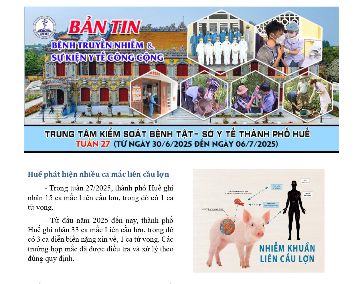 Bản tin bệnh truyền nhiễm và sự kiện y tế công cộng - Tuần 27 (từ ngày 30/6/2025 đến ngày 06/7/2025) 10:00 11/07/2025