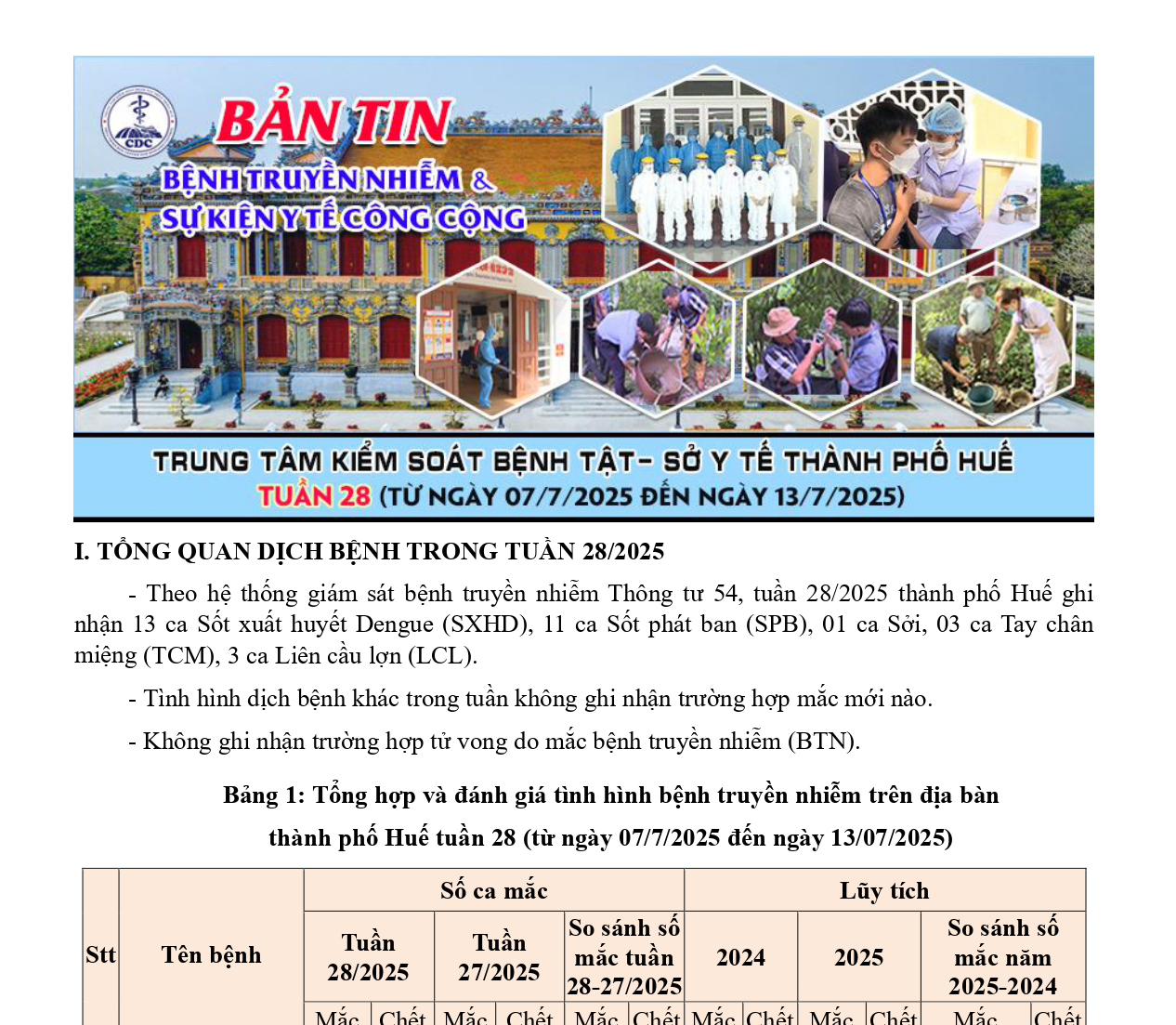 Bản tin bệnh truyền nhiễm và sự kiện y tế công cộng - Tuần 28 (từ ngày 07/7/2025 đến ngày 13/7/2025) 15:19 18/07/2025