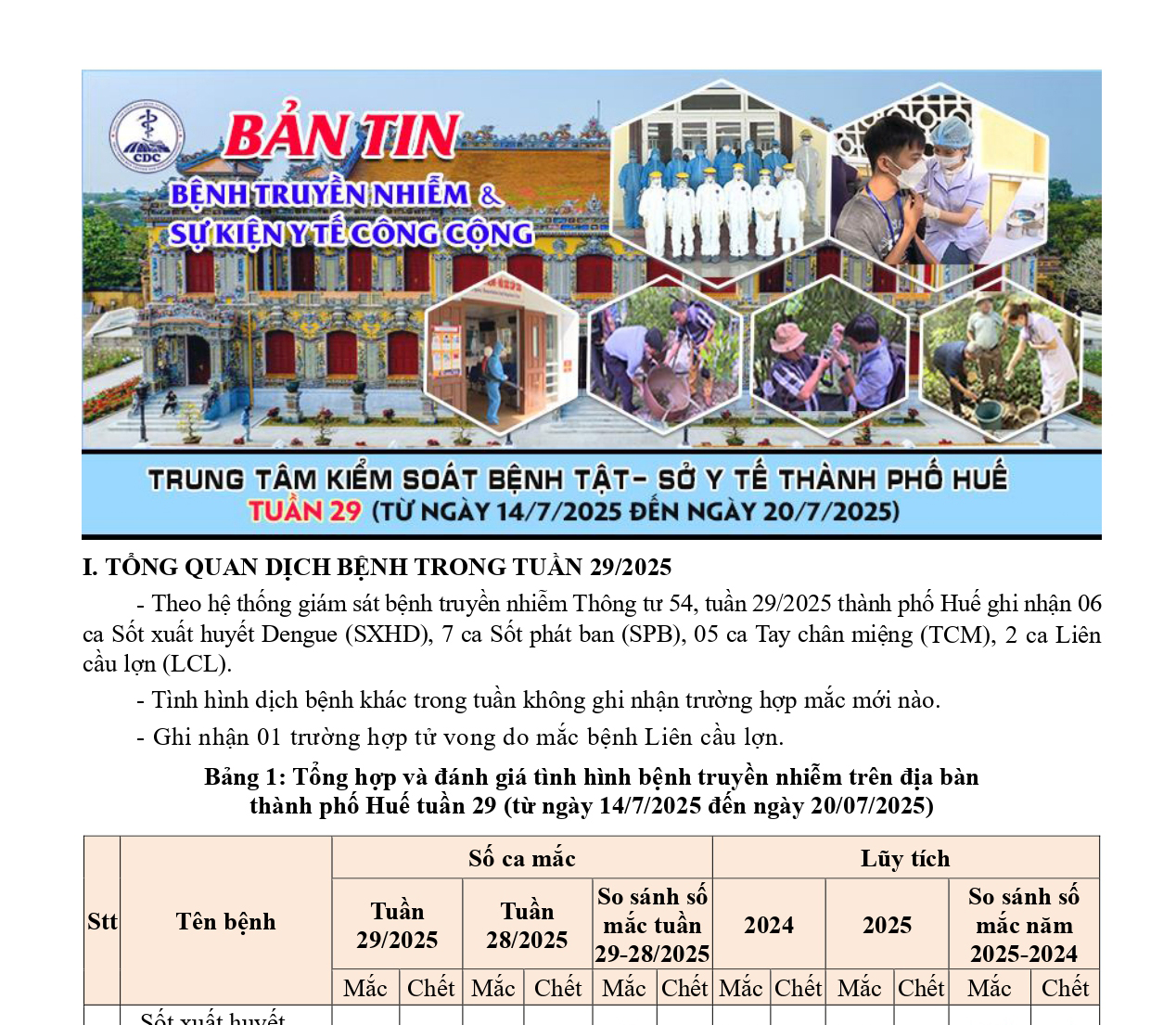 Bản tin bệnh truyền nhiễm và sự kiện y tế công cộng - Tuần 29 (từ ngày 14/7/2025 đến ngày 20/7/2025) 09:47 25/07/2025