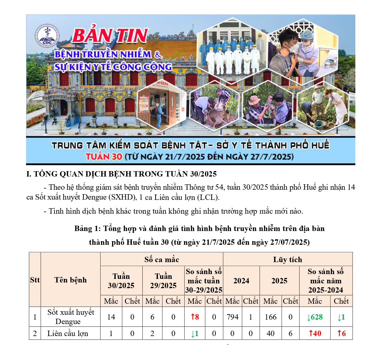 Bản tin bệnh truyền nhiễm và sự kiện y tế công cộng - Tuần 30 (từ ngày 21/7/2025 đến ngày 27/7/2025) 23:37 31/07/2025