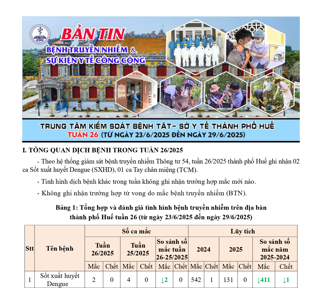 Bản tin bệnh truyền nhiễm và sự kiện y tế công cộng - Tuần 26 (từ ngày 23/6/2025 đến ngày 29/6/2025) 11:10 04/07/2025