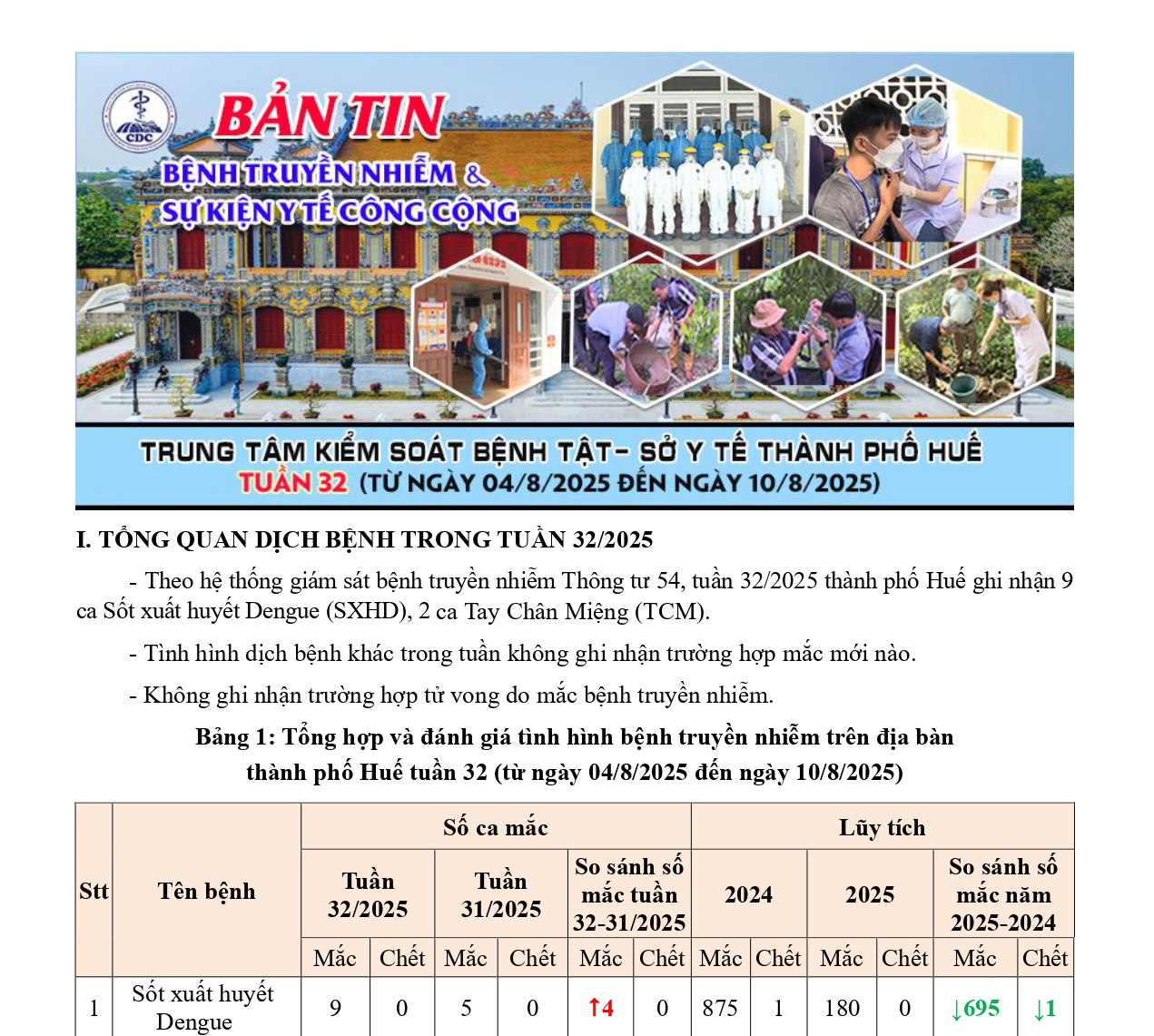 Bản tin bệnh truyền nhiễm và sự kiện y tế công cộng - Tuần 32 (từ ngày 04/8/2025 đến ngày 10/8/2025) 09:00 15/08/2025
