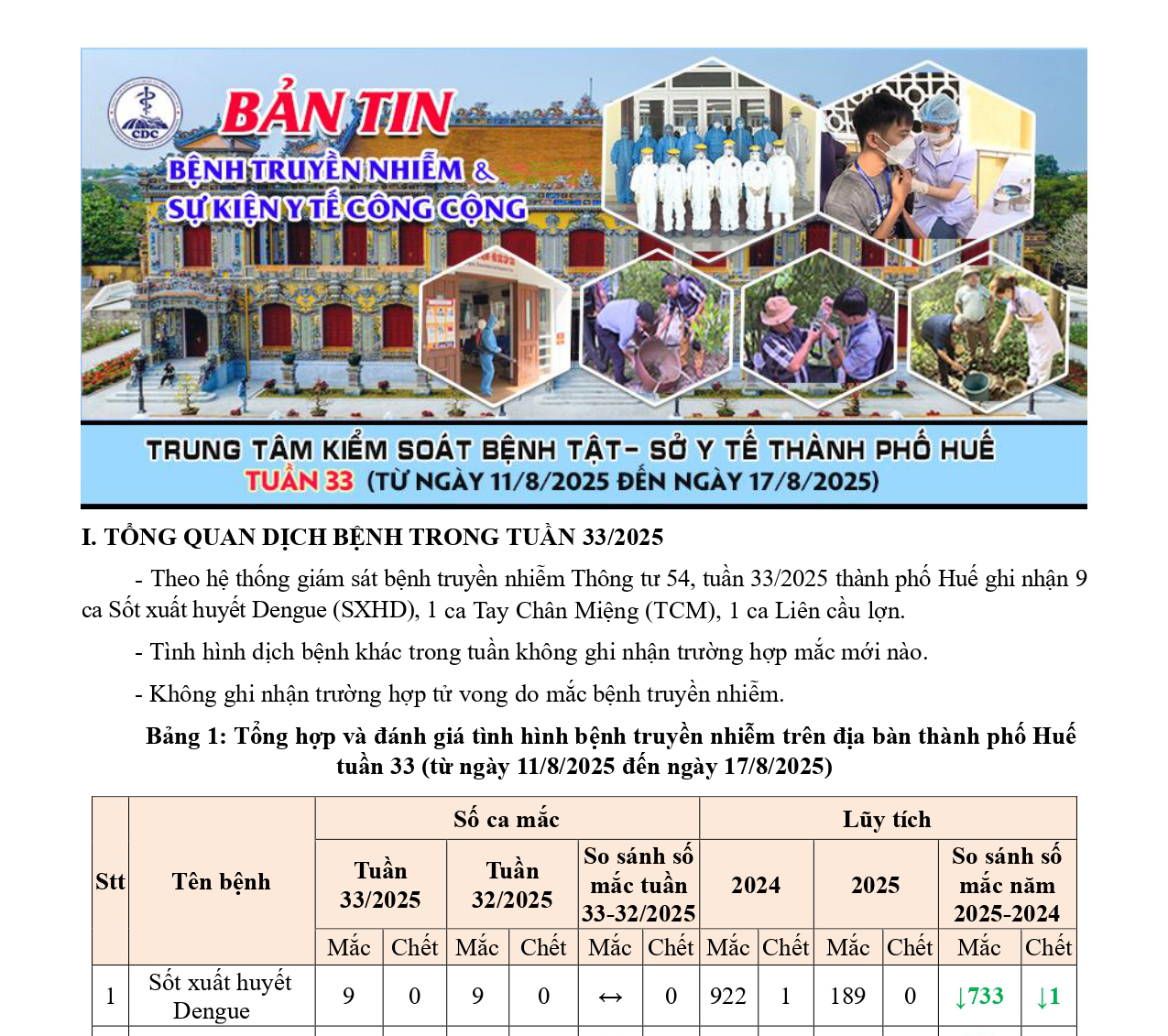 Bản tin bệnh truyền nhiễm và sự kiện y tế công cộng - Tuần 33 (từ ngày 11/8/2025 đến ngày 17/8/2025) 14:50 22/08/2025