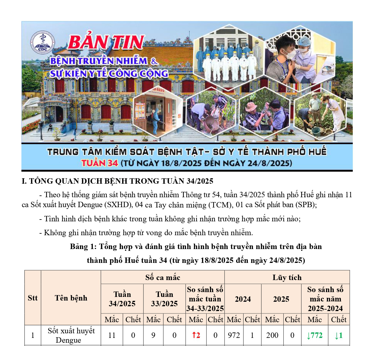 Bản tin bệnh truyền nhiễm và sự kiện y tế công cộng - Tuần 34 (từ ngày 18/8/2025 đến ngày 24/8/2025) 14:03 29/08/2025