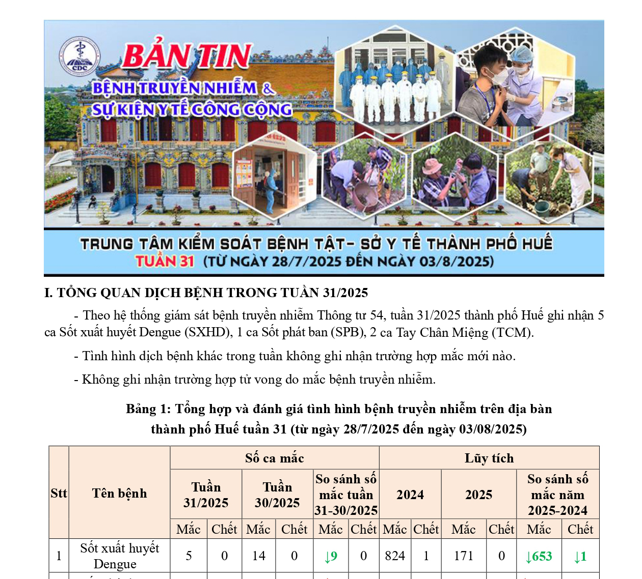 Bản tin bệnh truyền nhiễm và sự kiện y tế công cộng - Tuần 31 (từ ngày 28/7/2025 đến ngày 03/8/2025) 16:47 07/08/2025