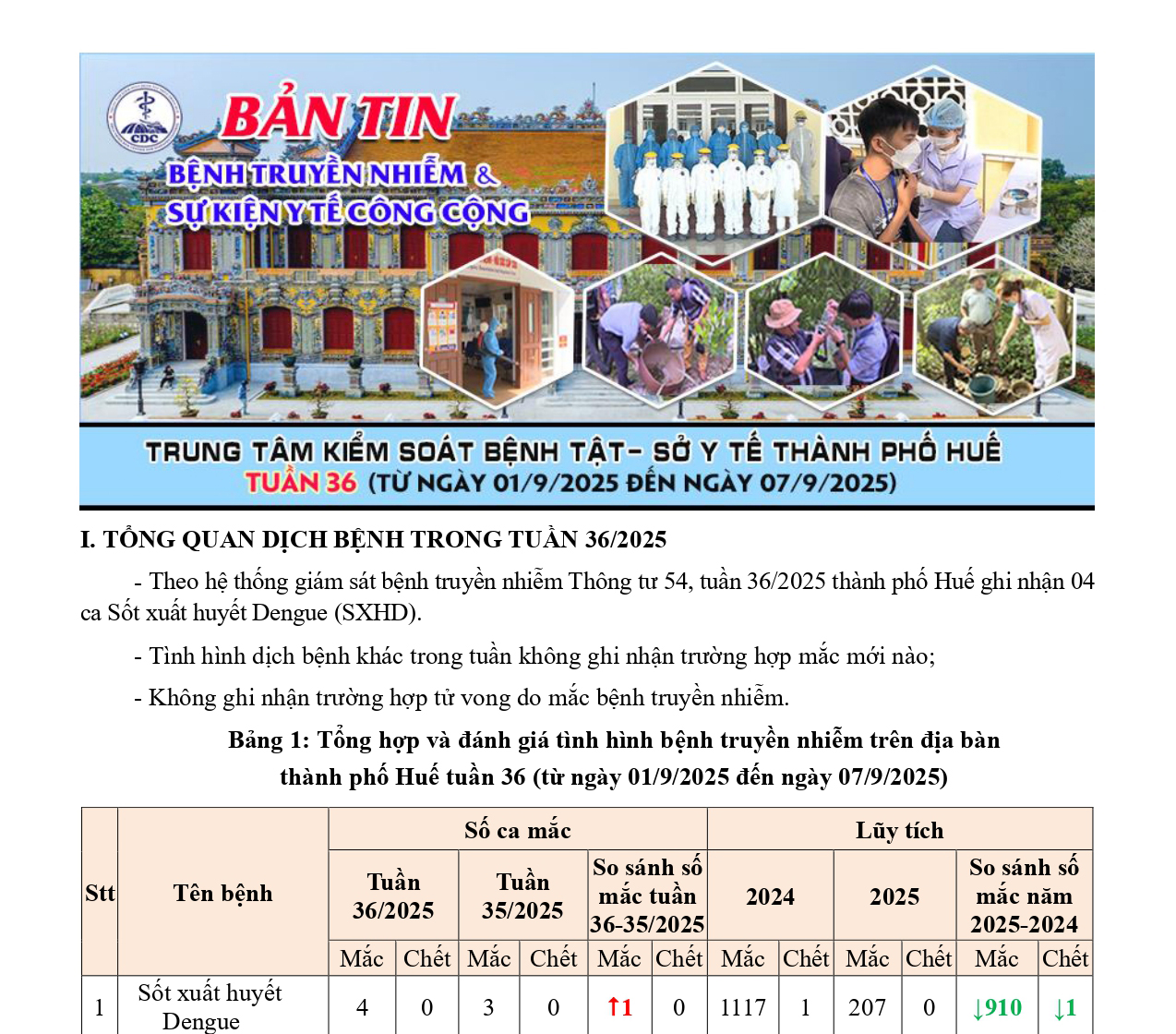 Bản tin bệnh truyền nhiễm và sự kiện y tế công cộng - Tuần 36 (từ ngày 01/9/2025 đến ngày 07/9/2025) 16:51 11/09/2025