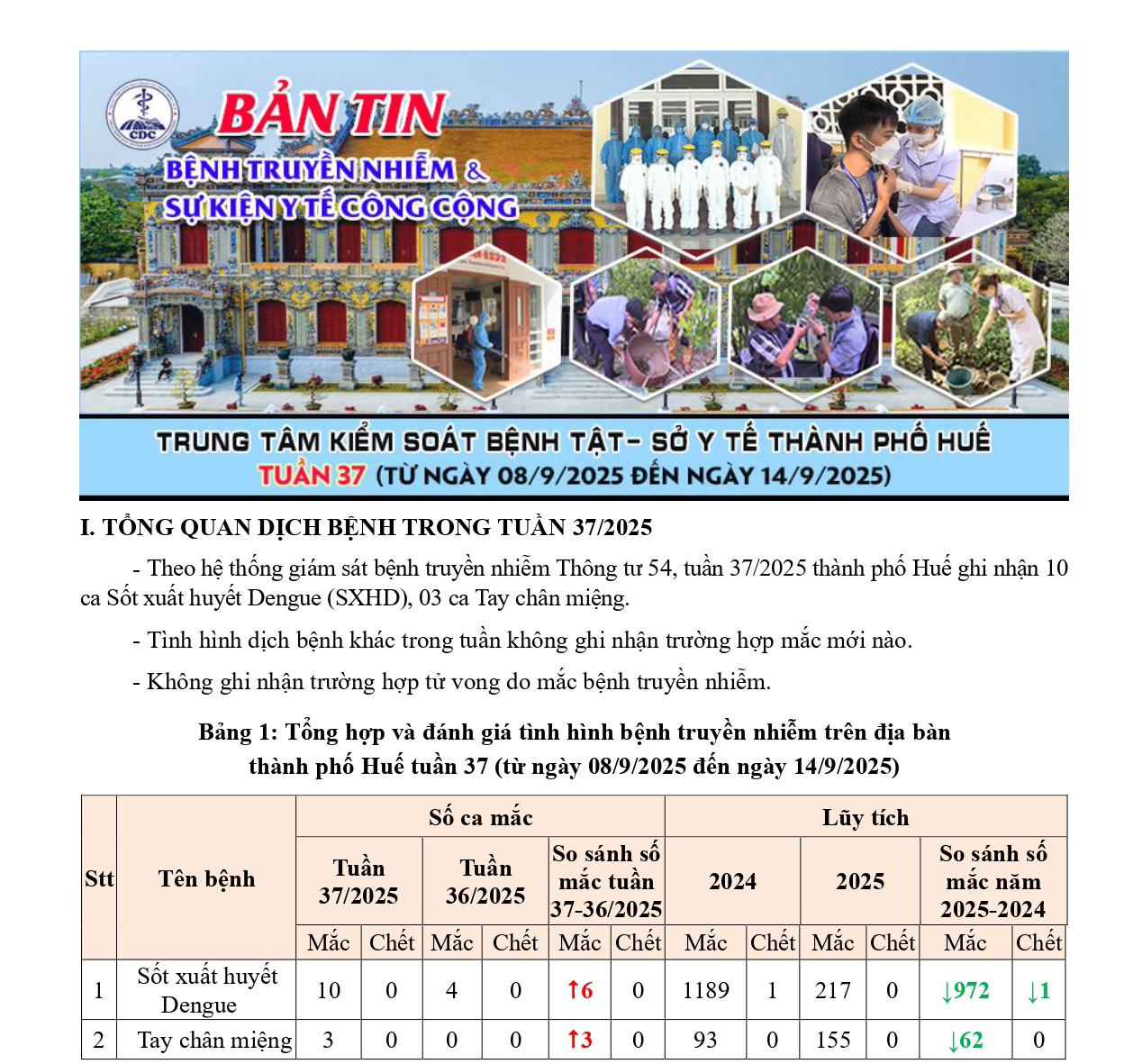 Bản tin bệnh truyền nhiễm và sự kiện y tế công cộng - Tuần 37 (từ ngày 08/9/2025 đến ngày 14/9/2025) 16:29 18/09/2025