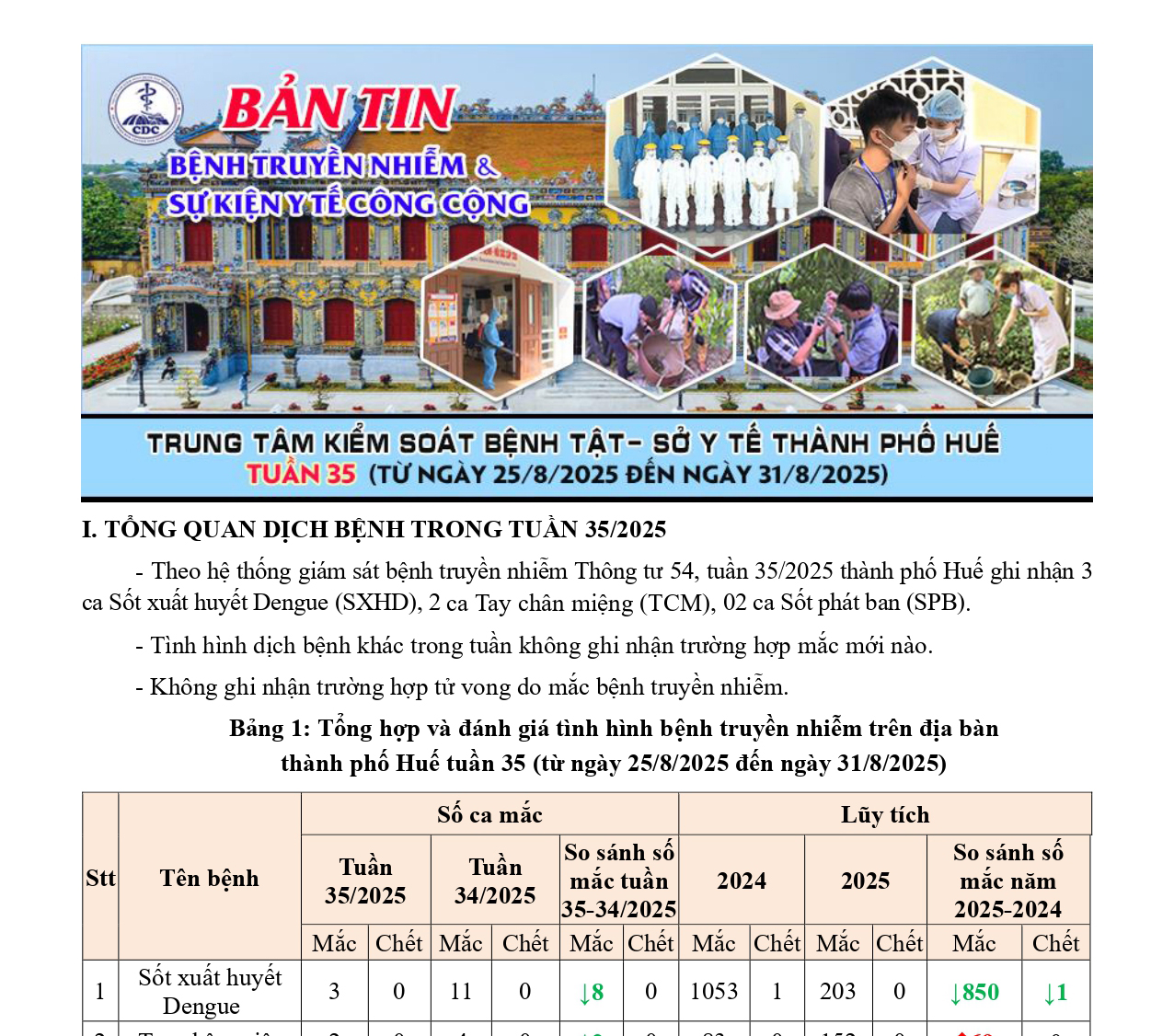 Bản tin bệnh truyền nhiễm và sự kiện y tế công cộng - Tuần 35 (từ ngày 25/8/2025 đến ngày 31/8/2025) 16:21 04/09/2025