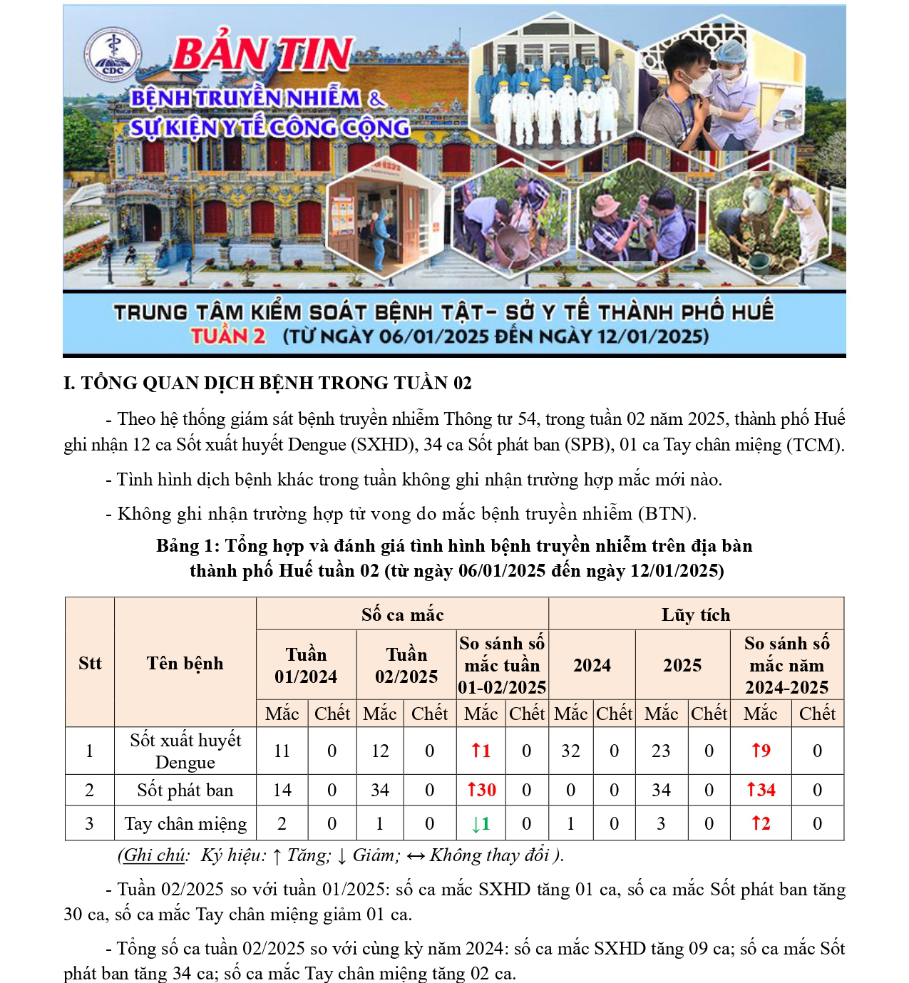Bản tin bệnh truyền nhiễm và sự kiện y tế công cộng - Tuần 02 (từ ngày 06/01/2025 đến ngày 12/01/2025)