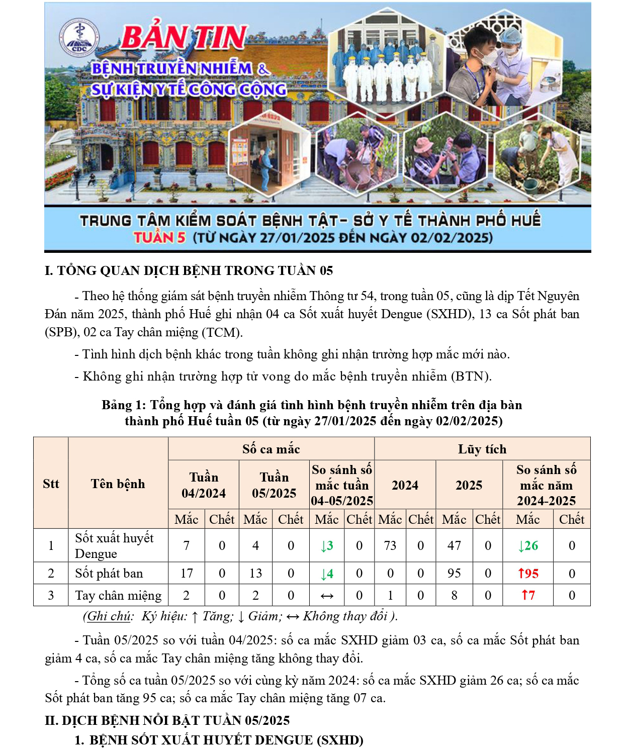 Bản tin bệnh truyền nhiễm và sự kiện y tế công cộng - Tuần 05 (từ ngày 27/01/2025 đến ngày 02/02/2025)