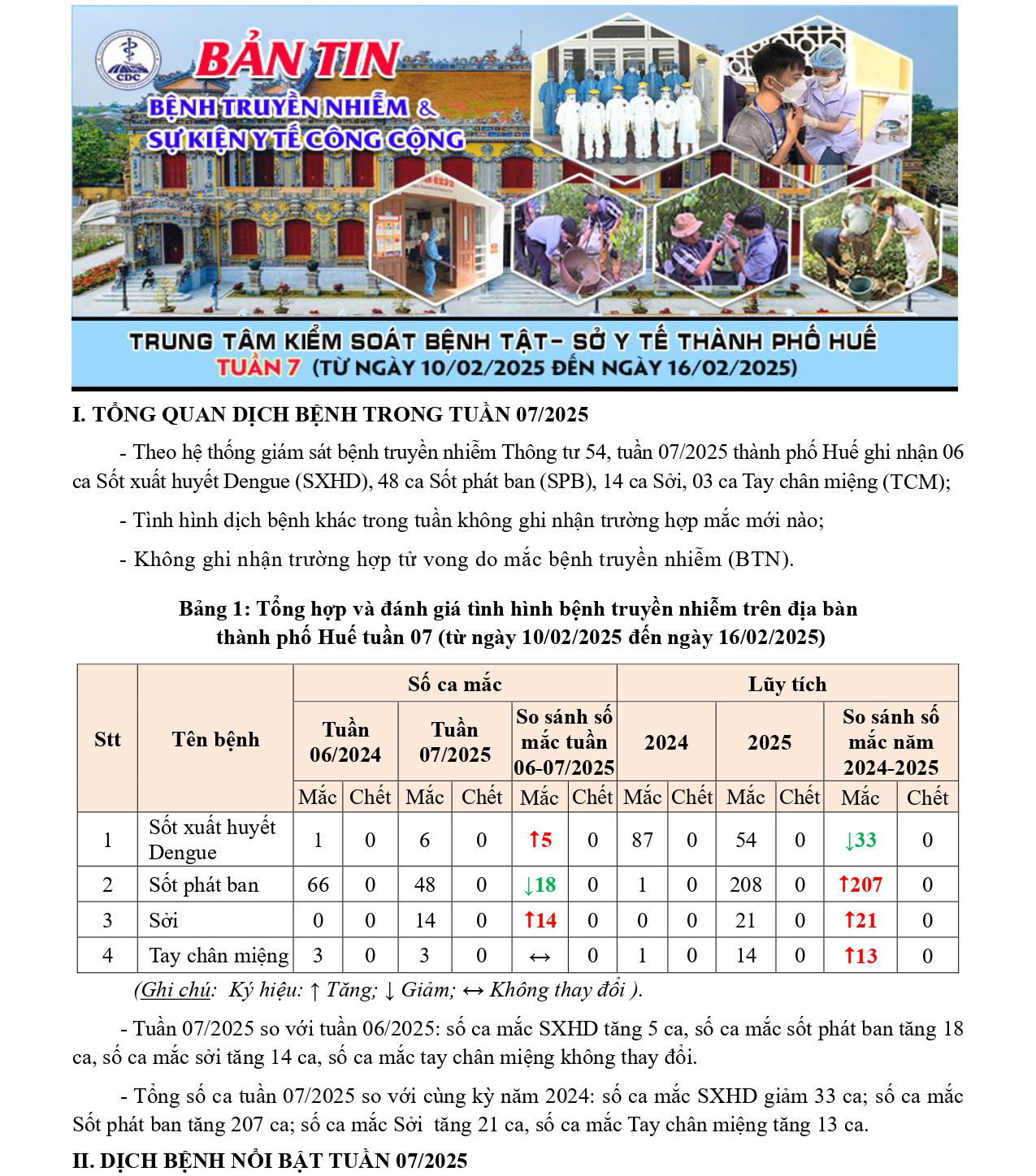 Bản tin bệnh truyền nhiễm và sự kiện y tế công cộng - Tuần 07 (từ ngày 10/02/2025 đến ngày 16/02/2025)