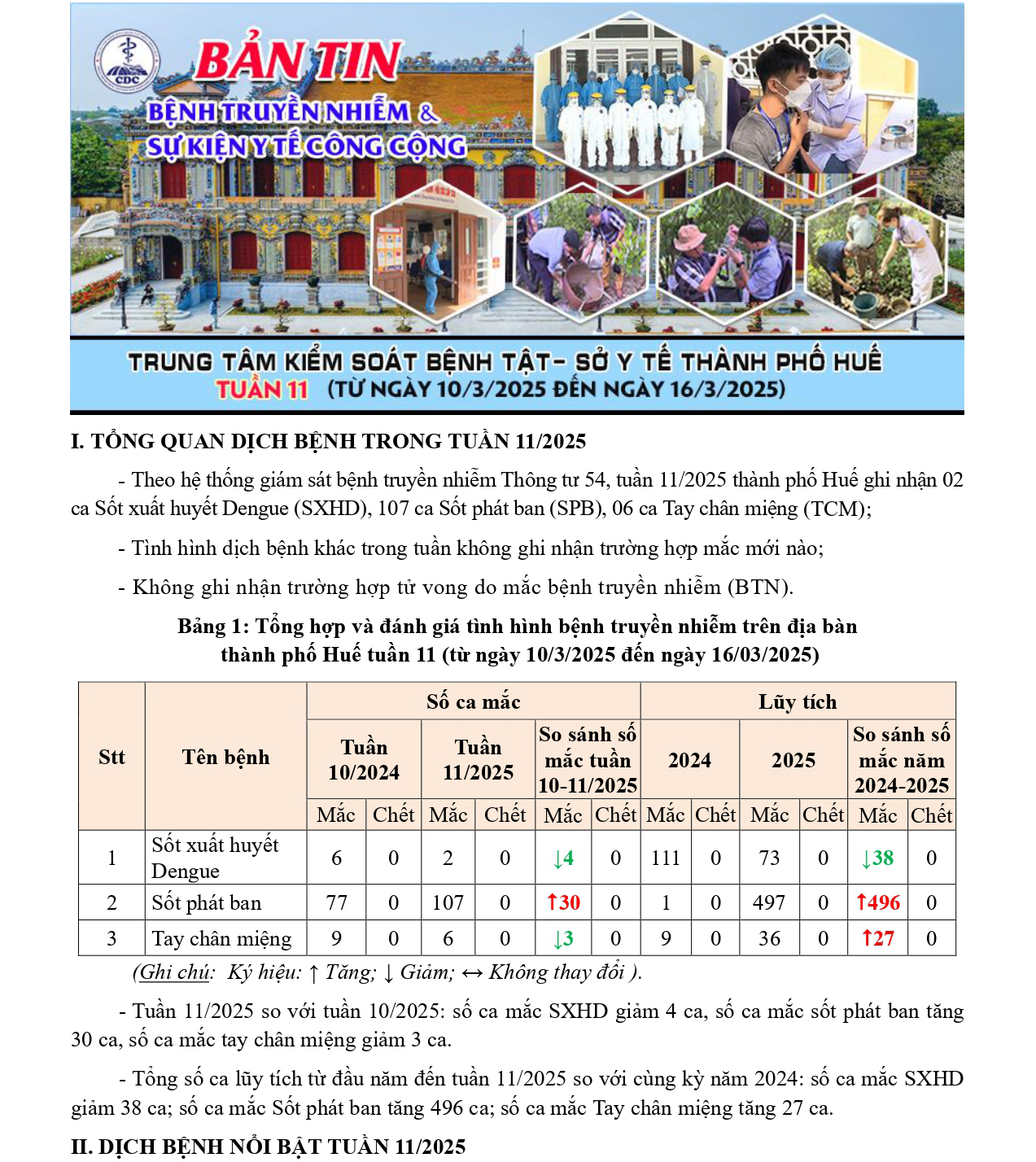 Bản tin bệnh truyền nhiễm và sự kiện y tế công cộng - Tuần 11 (từ ngày 10/3/2025 đến ngày 16/3/2025)
