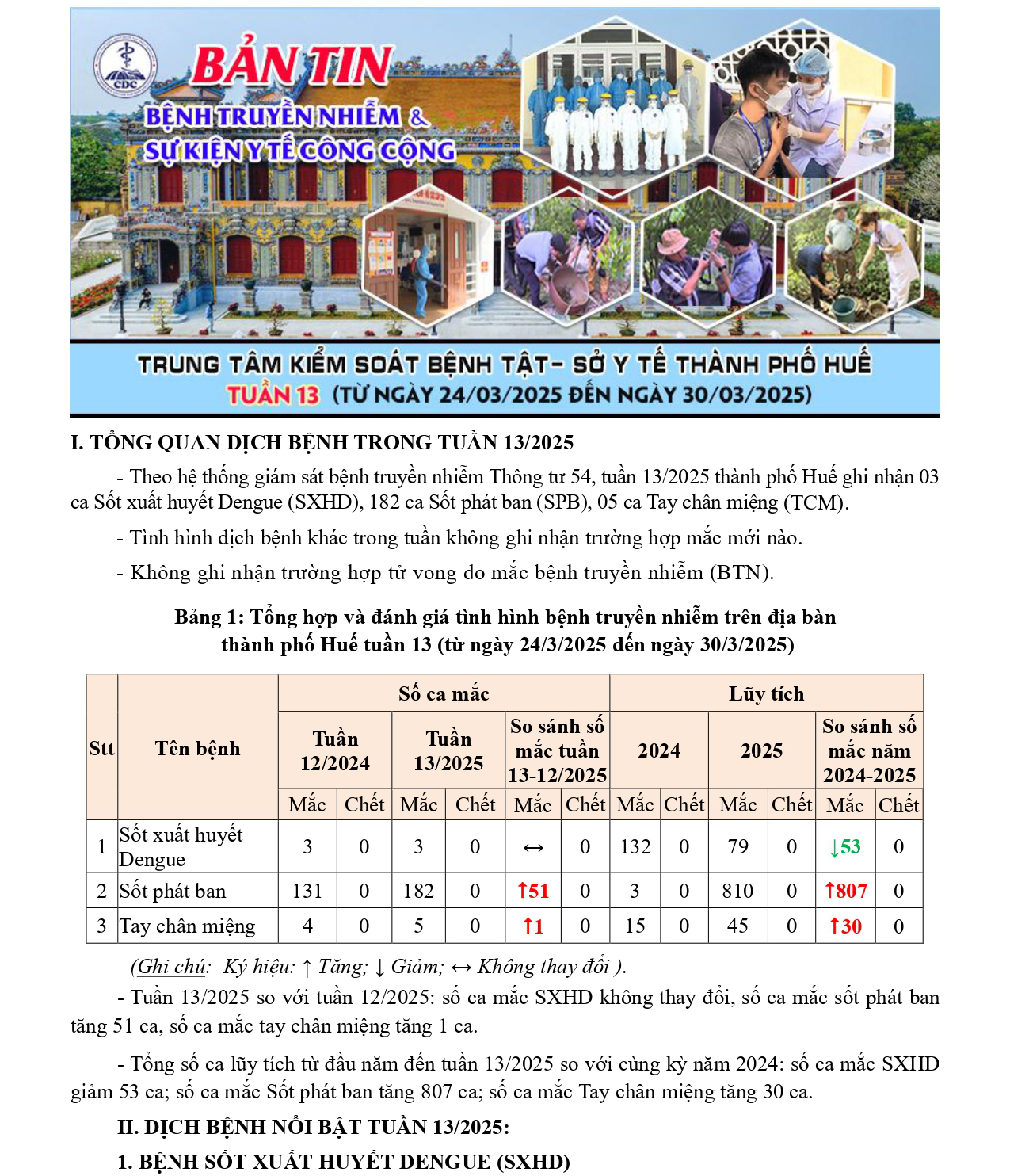 Bản tin bệnh truyền nhiễm và sự kiện y tế công cộng - Tuần 13 (từ ngày 24/3/2025 đến ngày 30/3/2025)
