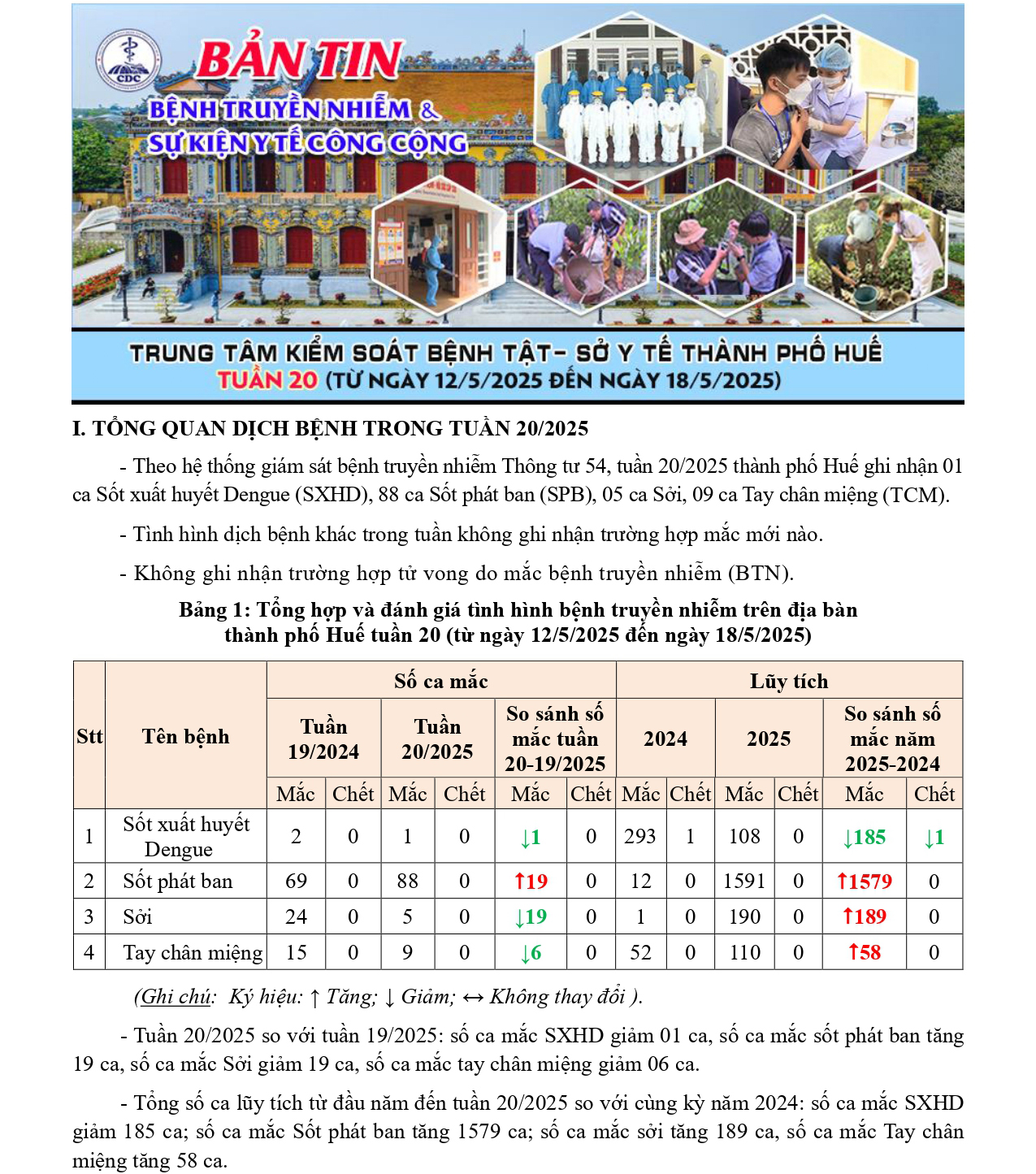 Bản tin bệnh truyền nhiễm và sự kiện y tế công cộng - Tuần 20 (từ ngày 12/5/2025 đến ngày 18/5/2025)