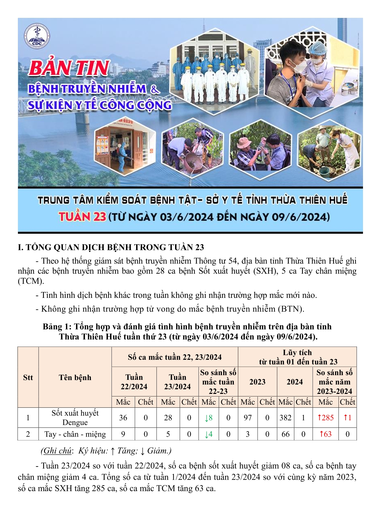 Bản tin bệnh truyền nhiễm và sự kiện y tế công cộng - Tuần 23 (từ ngày 03/6/2024 đến ngày 09/6/2024)