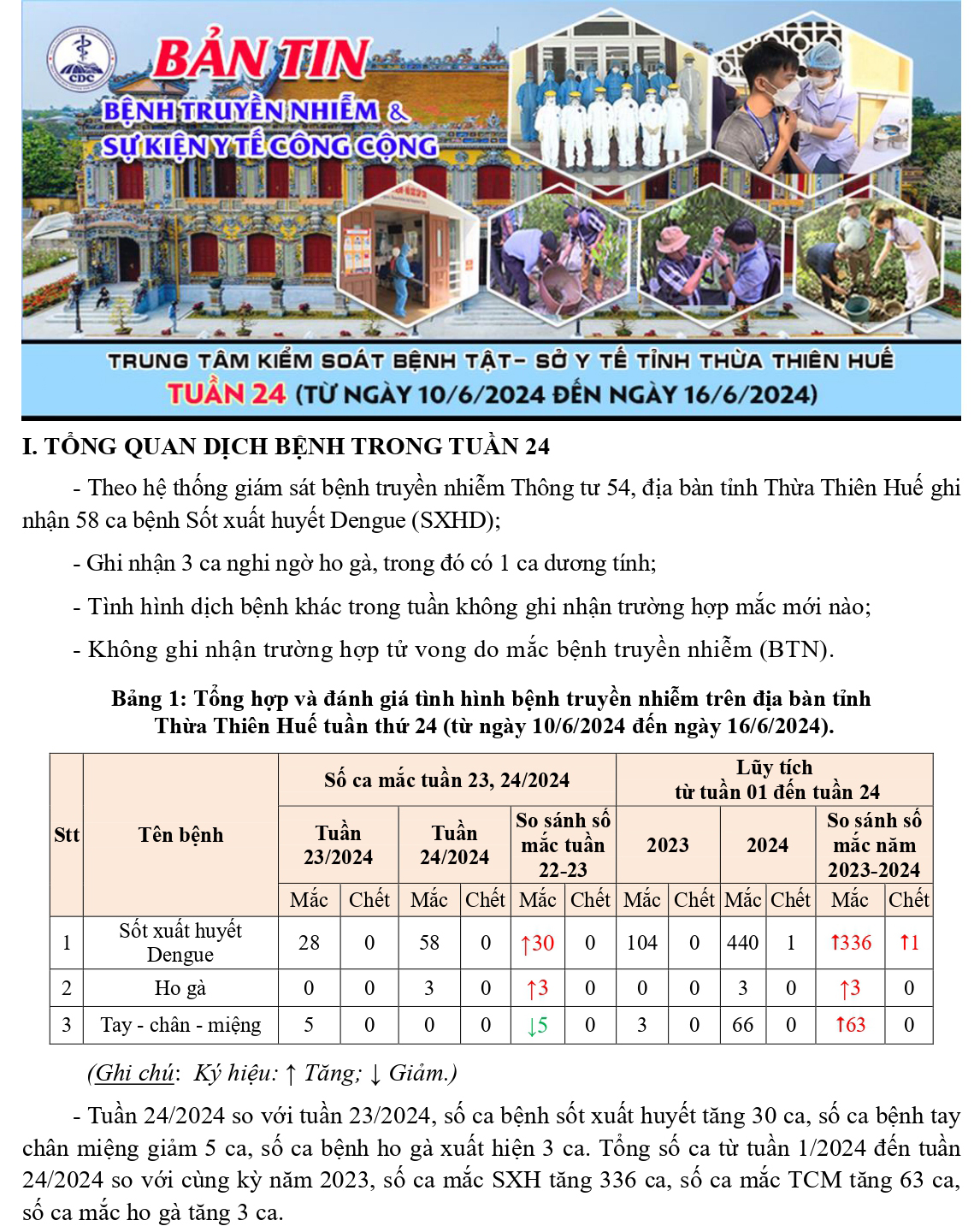 Bản tin bệnh truyền nhiễm và sự kiện y tế công cộng - Tuần 24 (từ ngày 10/6/2024 đến ngày 16/6/2024)