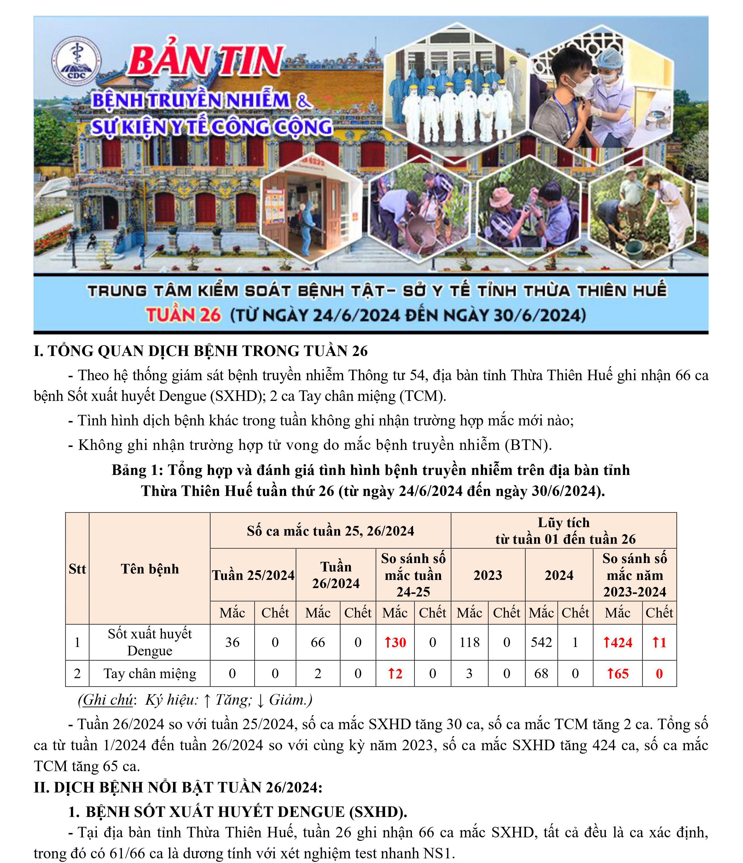 Bản tin bệnh truyền nhiễm và sự kiện y tế công cộng - Tuần 26 (từ ngày 24/6/2024 đến ngày 30/6/2024)