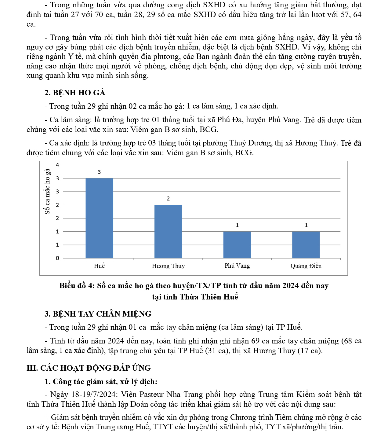 Bản tin bệnh truyền nhiễm và sự kiện y tế công cộng - Tuần 29 (từ ngày 15/7/2024 đến ngày 21/7/2024)