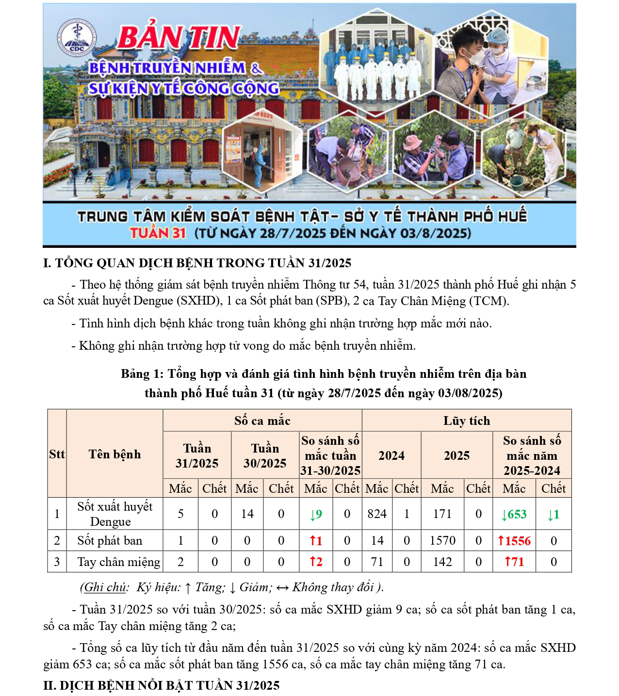 Bản tin bệnh truyền nhiễm và sự kiện y tế công cộng - Tuần 31 (từ ngày 28/7/2025 đến ngày 03/8/2025)