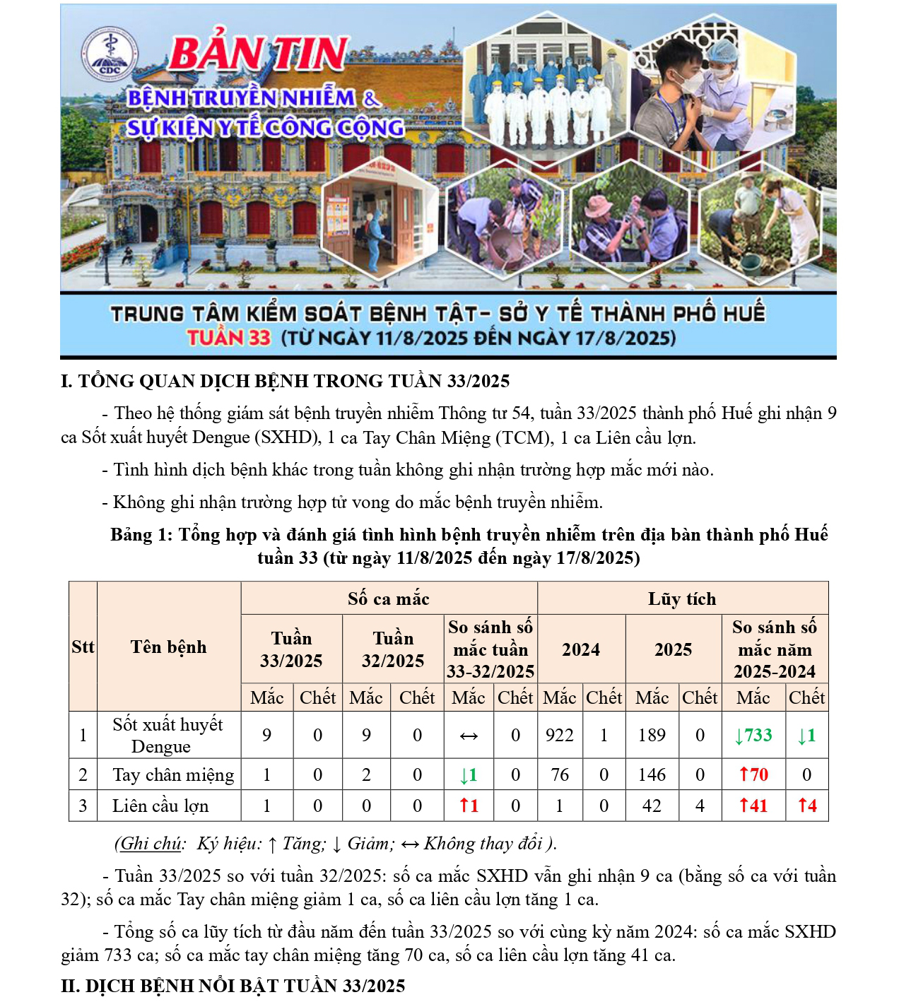 Bản tin bệnh truyền nhiễm và sự kiện y tế công cộng - Tuần 33 (từ ngày 11/8/2025 đến ngày 17/8/2025)