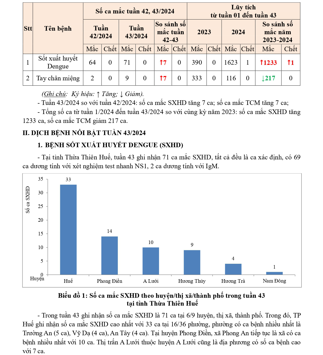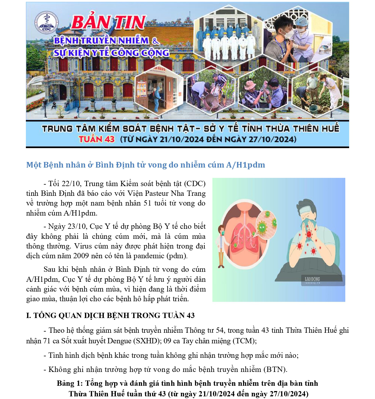 Bản tin bệnh truyền nhiễm và sự kiện y tế công cộng - Tuần 43 (từ ngày 21/10/2024 đến ngày 27/10/2024)