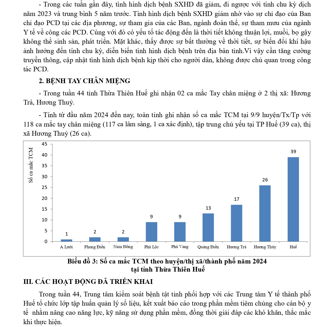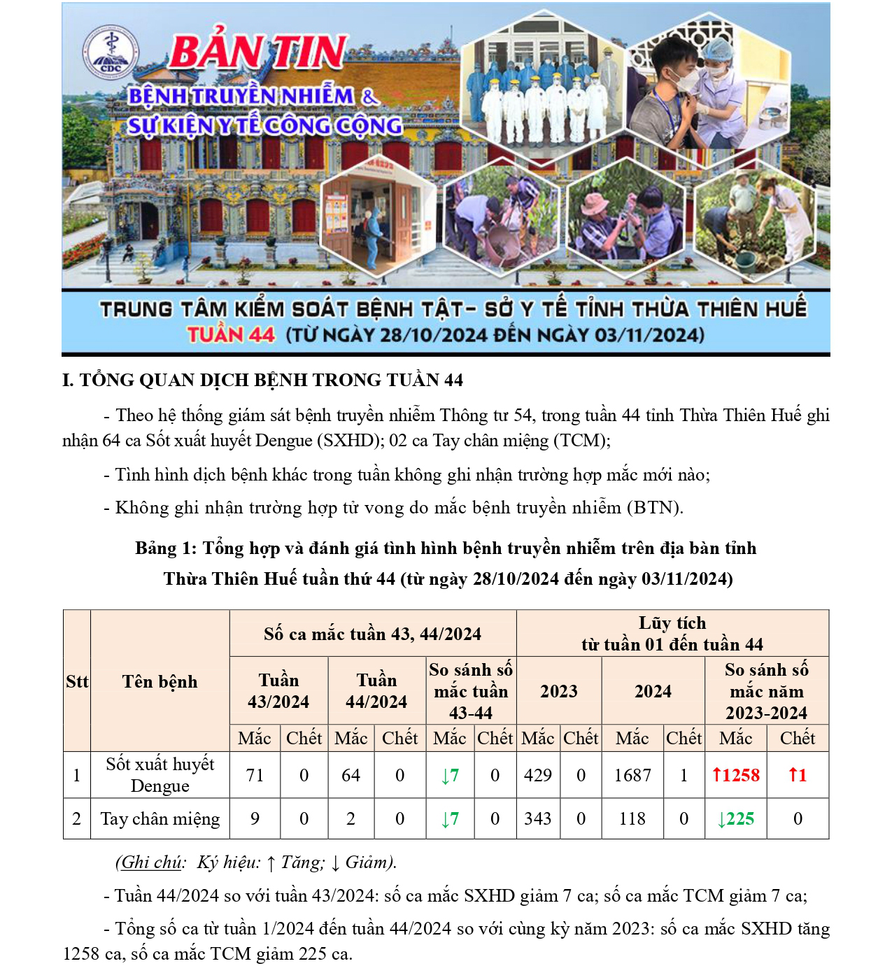 Bản tin bệnh truyền nhiễm và sự kiện y tế công cộng - Tuần 44 (từ ngày 28/10/2024 đến ngày 03/11/2024)