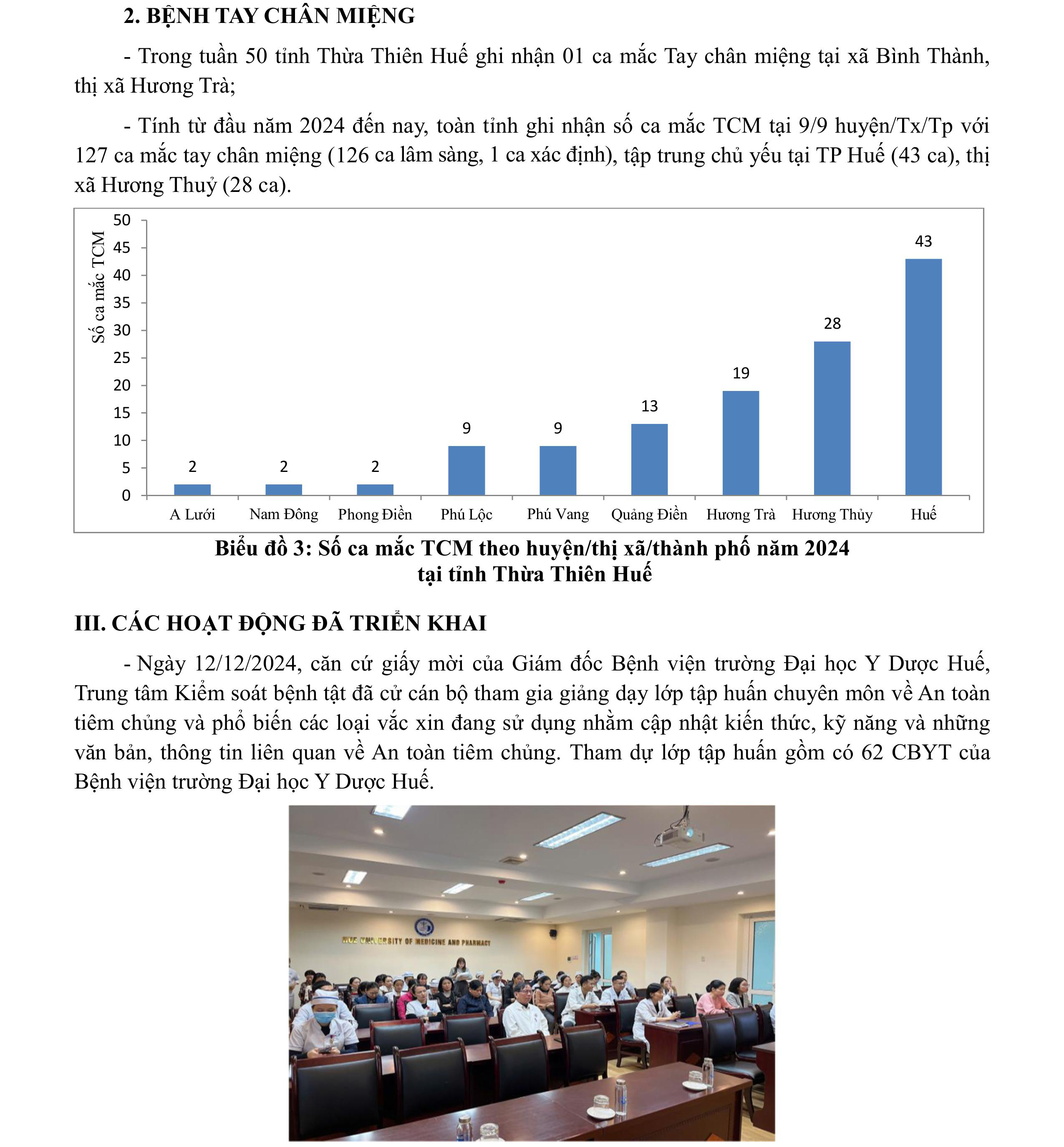 Bản tin bệnh truyền nhiễm và sự kiện y tế công cộng - Tuần 50 (từ ngày 09/12/2024 đến ngày 15/12/2024)