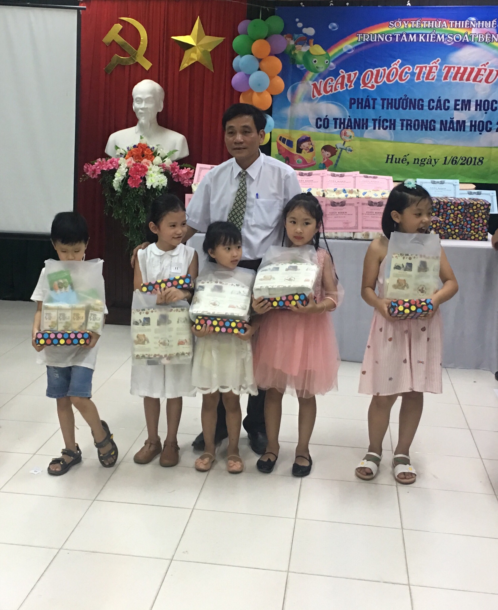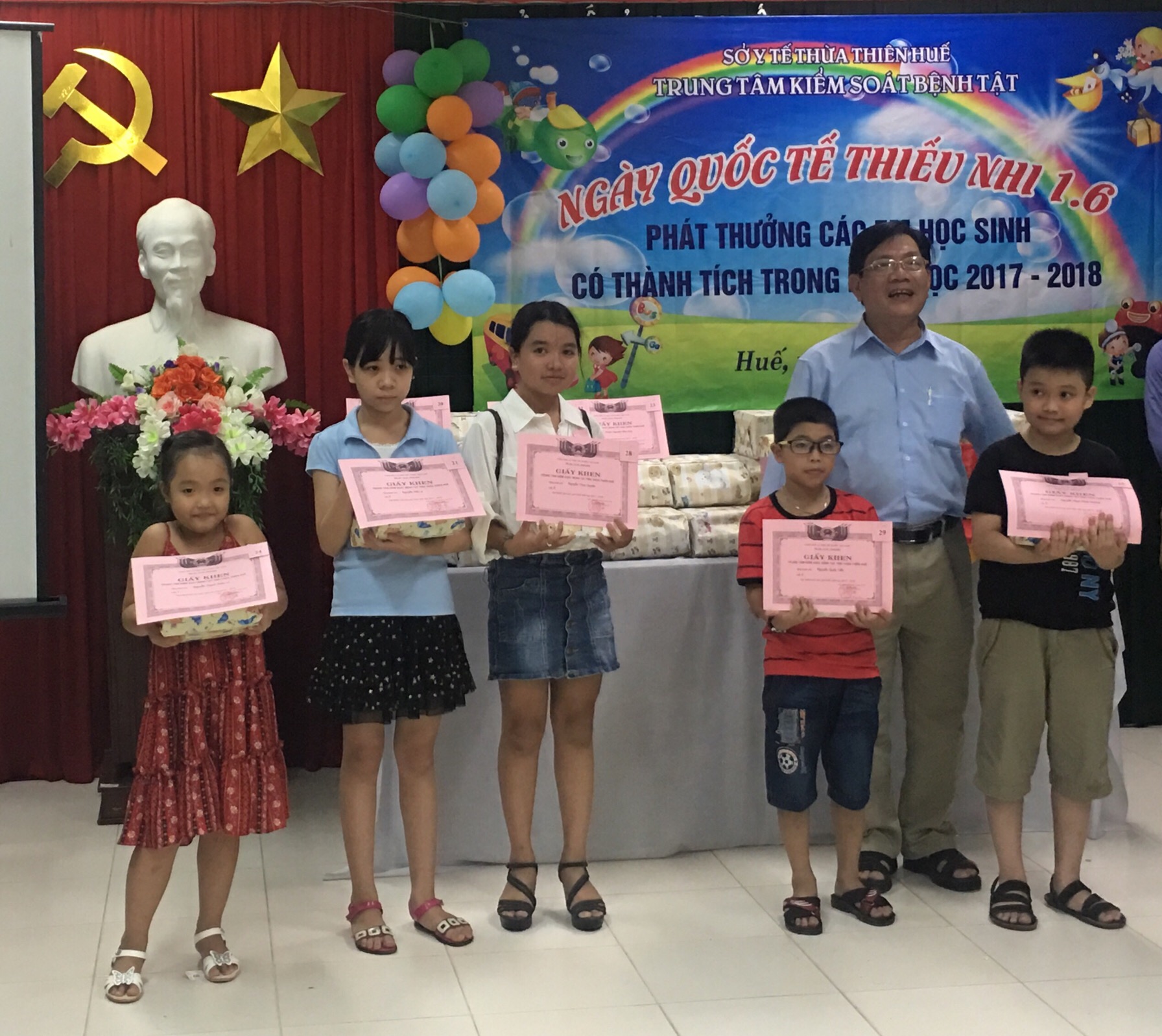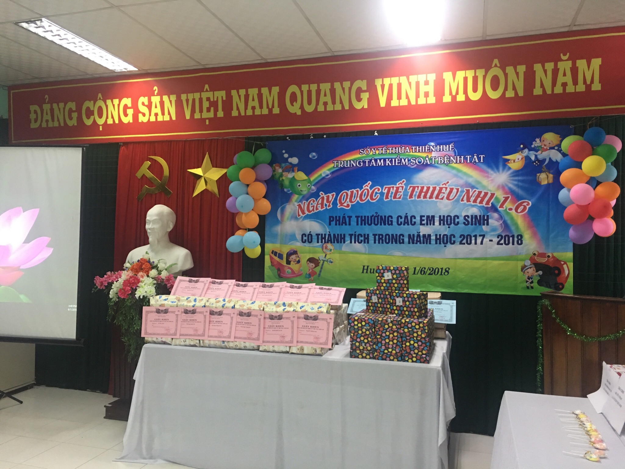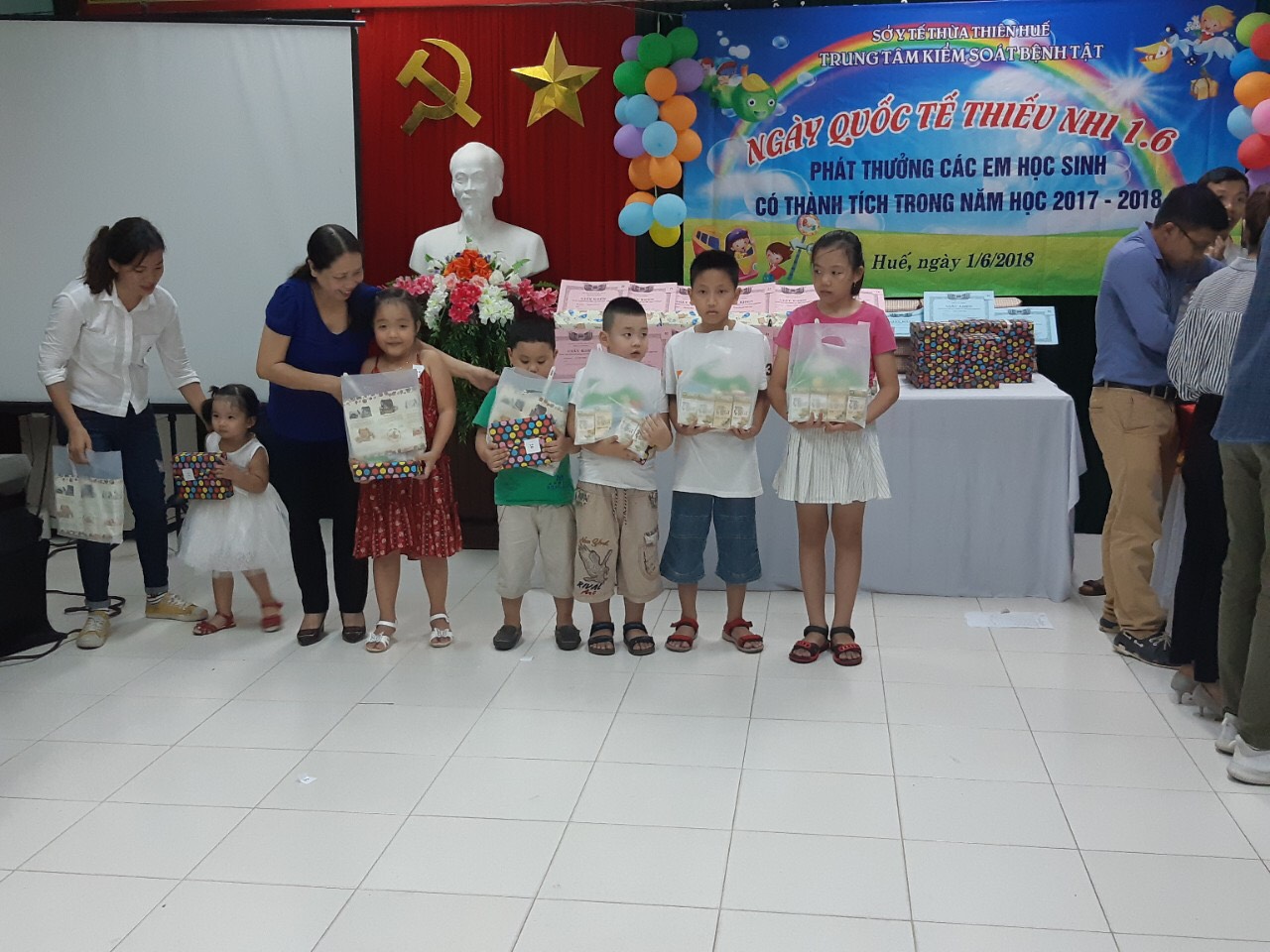 Chiều ngày 01/6/2018, tại Hội trường Trung tâm Kiểm soát bệnh tật tỉnh Thừa Thiên Huếđã diễn ra chương trình “Chào mừng ngày Quốc tế Thiếu nhi 01/6 và Phát thưởng các em học sinh có thành tích trong năm học 2017 - 2018”. Chương trình do CĐCS TTKSBT phối hợp cùng Chính quyền vàChi đoàn TTKSBT tổ chức.