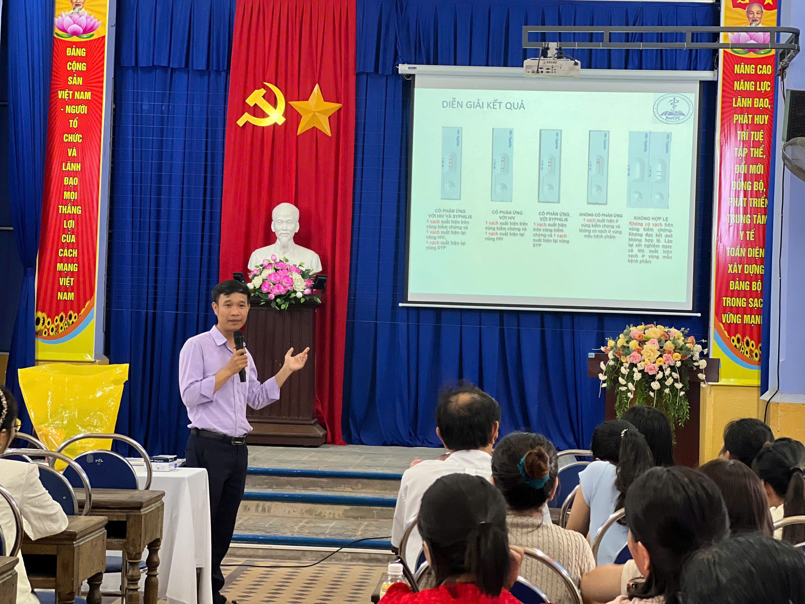Trong quá trình cung cấp kiến thức liên quan đến khái niệm, kĩ năng xét nghiệm HIV, tư vấn trước và sau xét nghiệm HIV, các cán bộ y tế còn được giới thiệu kĩ thuật xét nghiệm HIV và được trực tiếp thực hành kĩ thuật xét nghiệm HIV/giang mai bởi giảng viên của Khoa XN-CĐHA-TDCN của Trung tâm Kiểm soát bệnh tật.