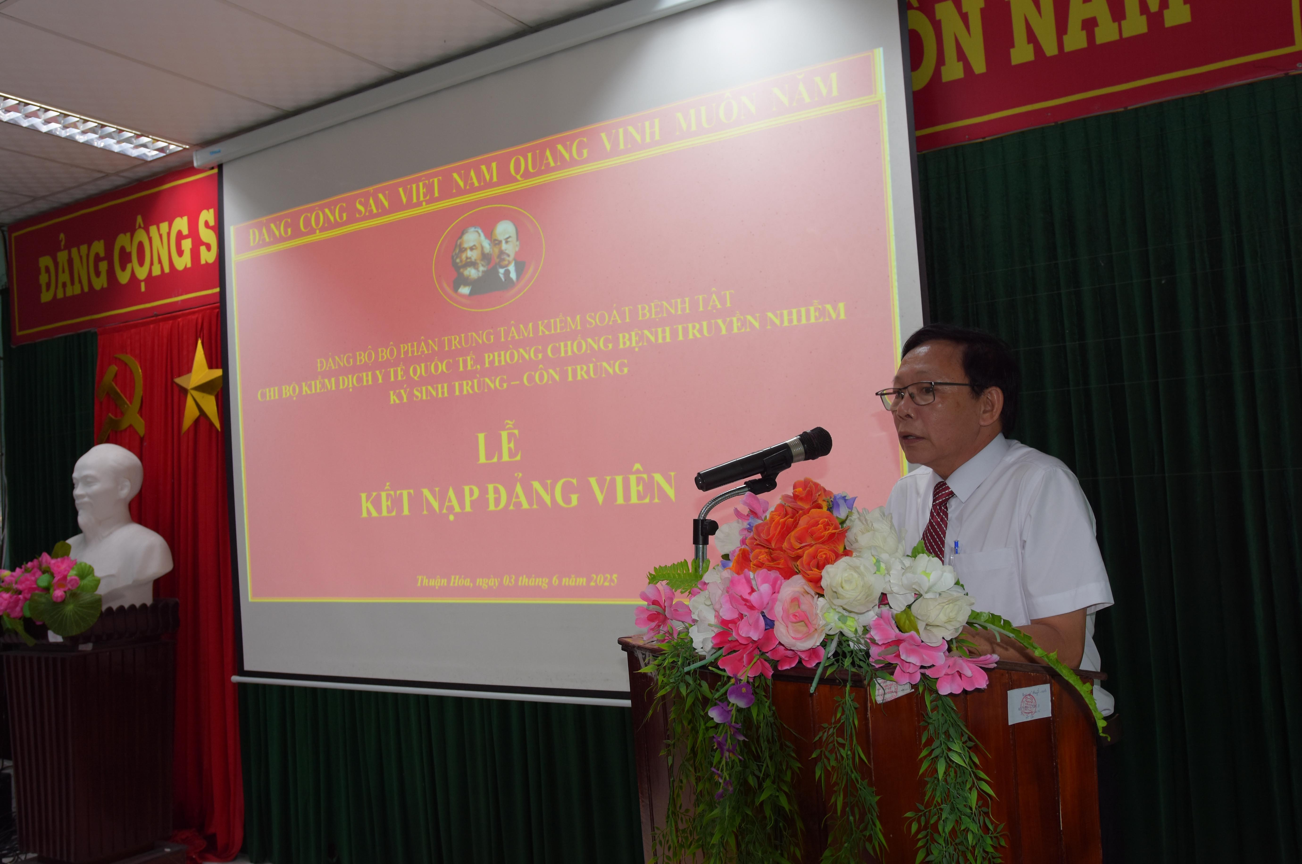 Đồng chí Hồ Xuân Vũ - UVBCH Đảng bộ Bộ phận, Phó Giám đốc TTKSBT phát biểu tại Lễ kết nạp Đảng viên.