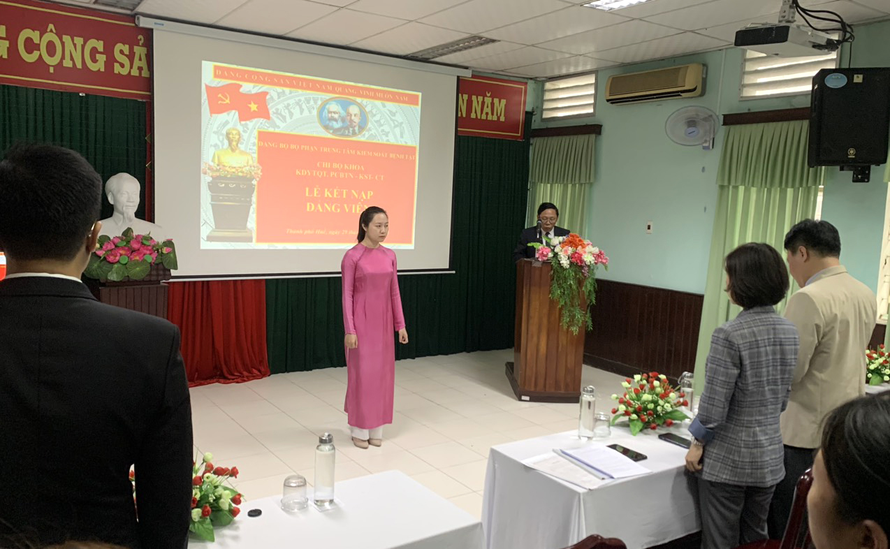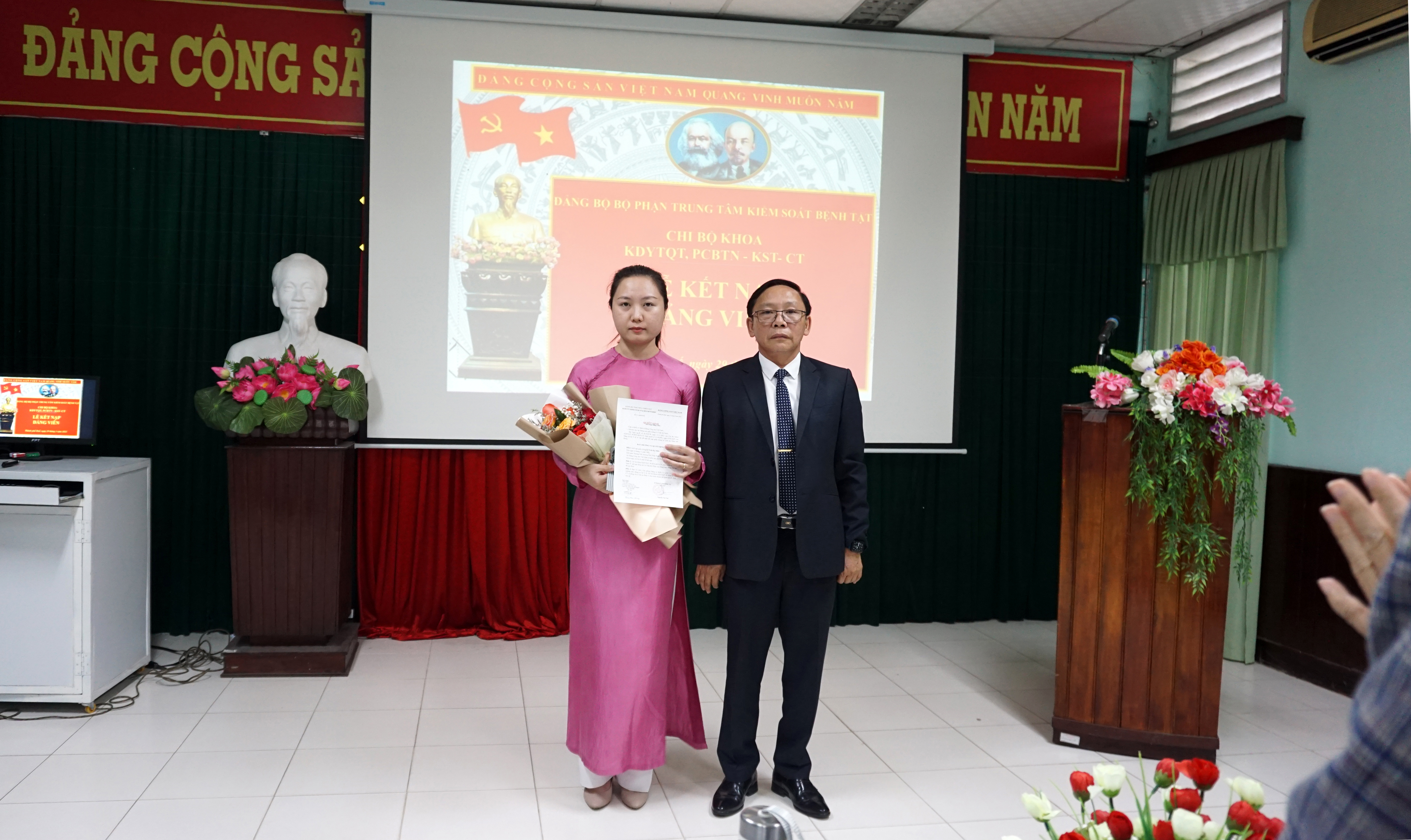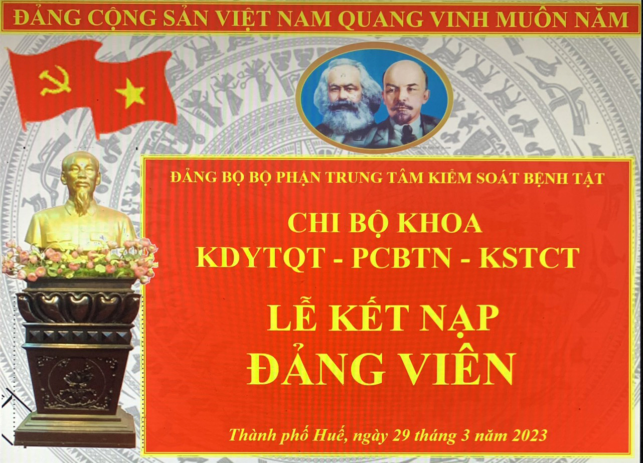Chiều ngày 29-3-2023, Chi bộ Khoa Kiểm dịch Y tế Quốc tế - Phòng chống bệnh lây nhiễm - Ký sinh trùng Côn trùng trực thuộc Đảng bộ Bộ phận Trung tâm Kiểm soát bệnh tật, tổ chức Lễ kết nạp Đảng viên cho 2 quần chúng ưu tú của khoa Phòng chống bệnh lây nhiễm - Ký sinh trùng Côn trùng. Tham dự Lễ kết nạp có đồng chí Hồ Xuân Vũ - Ủy viên BCH Đảng bộ Bộ phận, Phó Giám đốc, các đồng chí trong cấp ủy Đảng bộ Bộ phận, các Chi bộ trực thuộc Đảng bộ bộ phận Trung tâm KSBT; Lãnh đạo khoa Phòng chống bệnh lây nhiễm - Ký sinh trùng Côn trùng cùng các đồng chí trong Cấp ủy và toàn thể đảng viên Chi bộ Khoa Kiểm dịch Y tế Quốc tế - Phòng chống bệnh lây nhiễm - Ký sinh trùng Côn trùng.