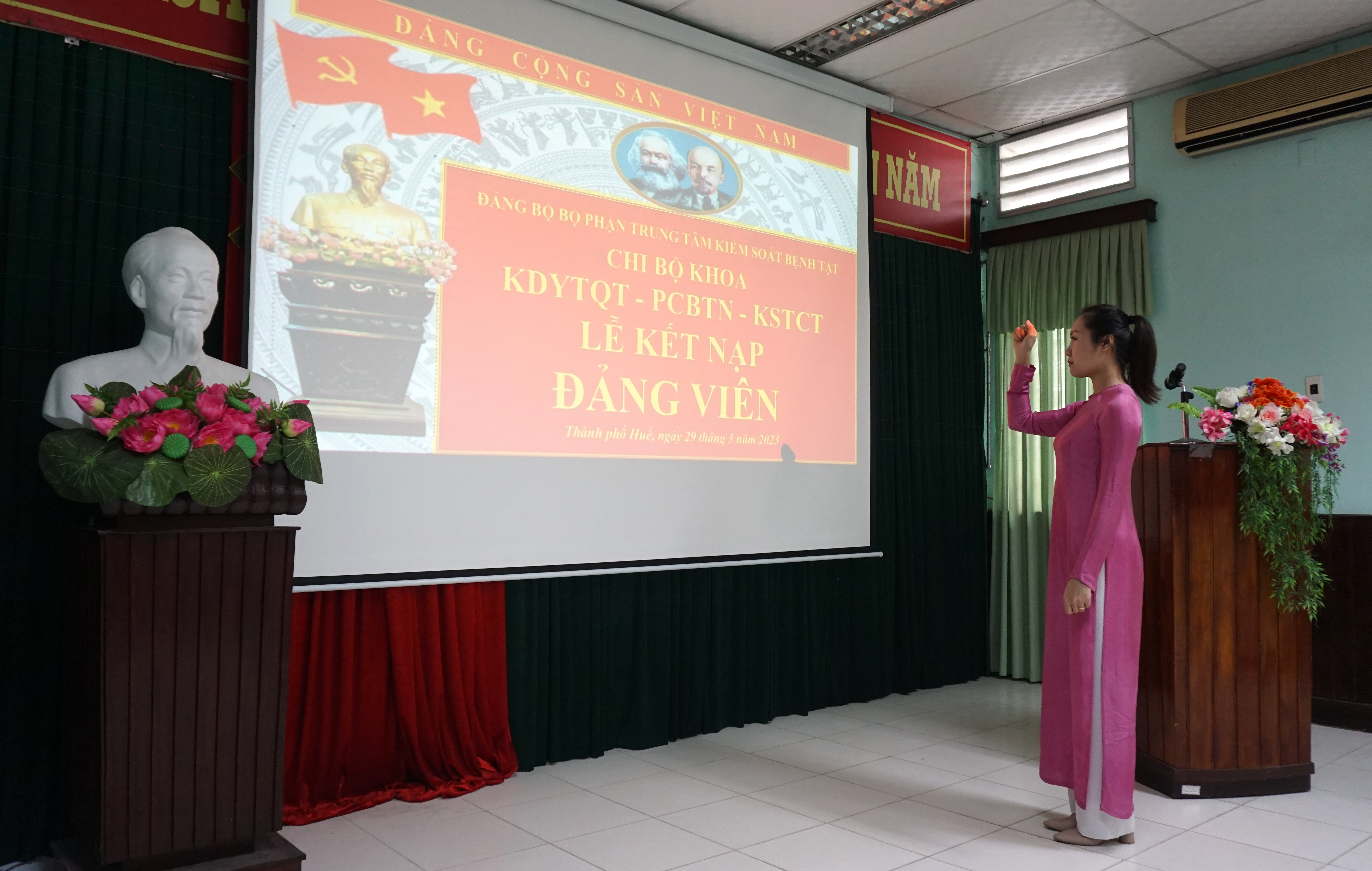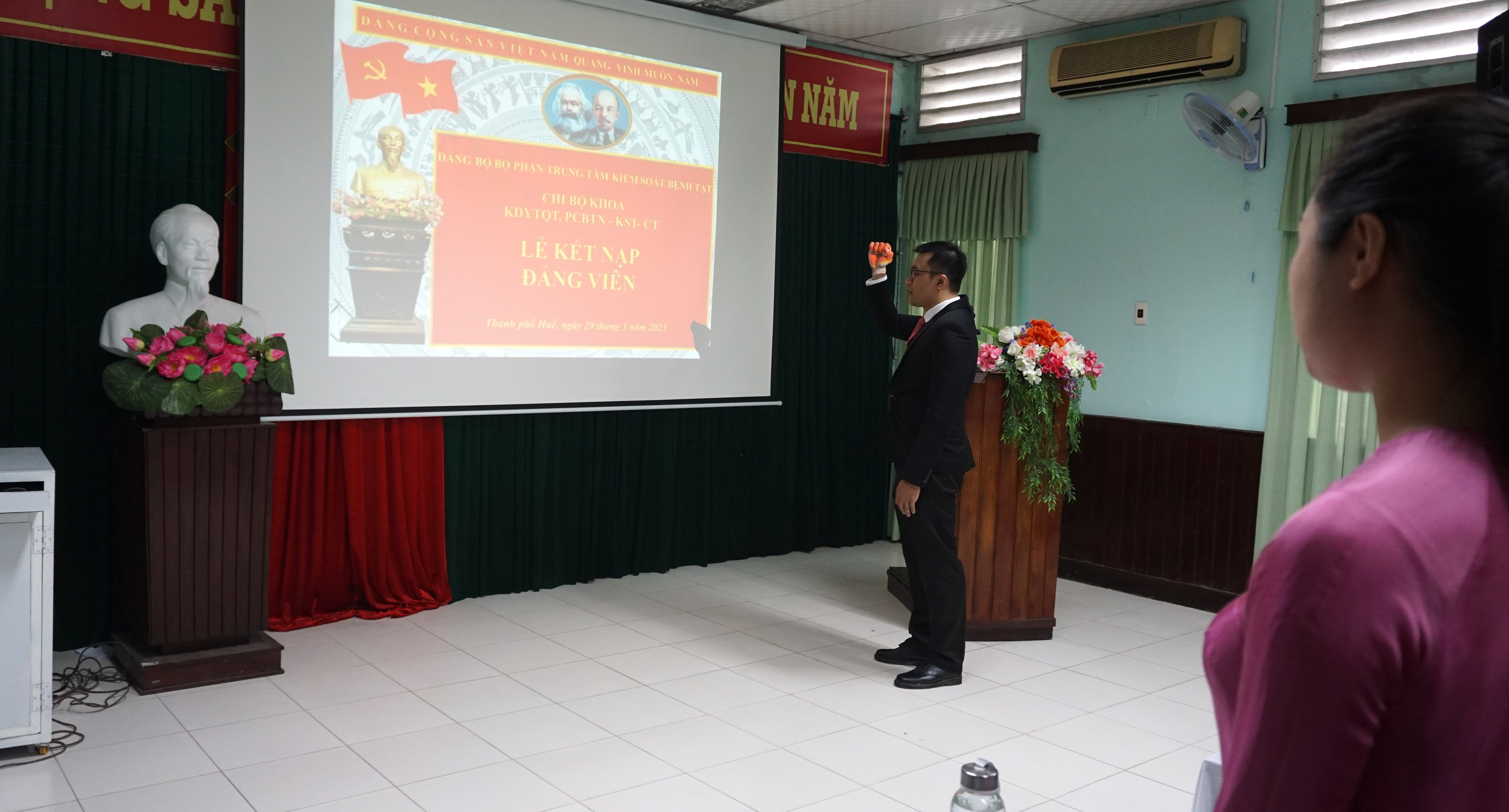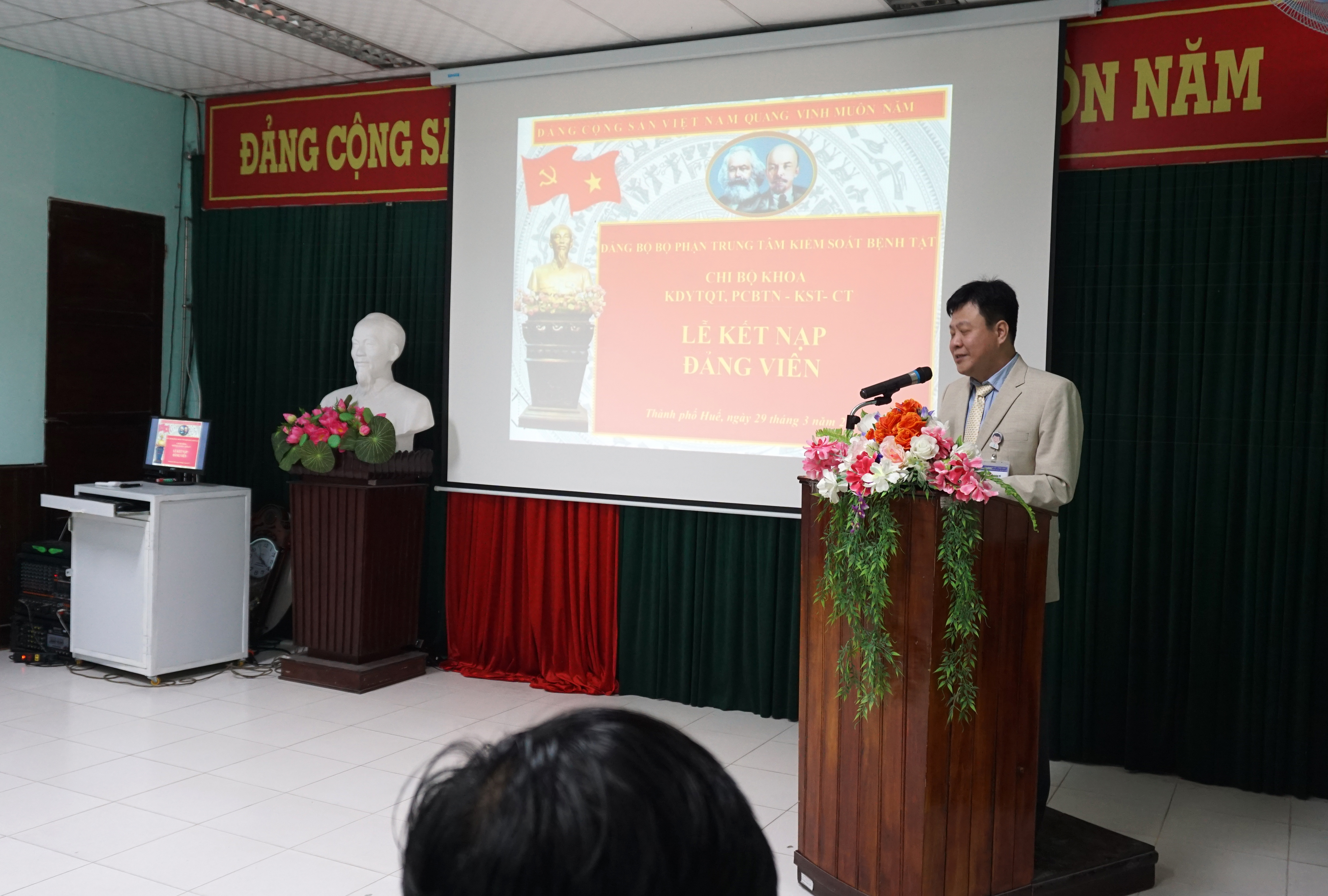 Tại lễ kết nạp, đồng chí Trần Đạo Phong - Bí thư chi bộ Khoa Kiểm dịch Y tế Quốc tế - Phòng chống bệnh lây nhiễm - Ký sinh trùng Côn trùng đọc và trao “Quyết định Kết nạp đảng viên” của Ban Thường vụ Đảng ủy Khối Cơ quan và Doanh nghiệp tỉnh Thừa Thiên Huế cho đồng chí Lê Thanh Hiếu và đồng chí Lê Trần Kỳ Diên và tặng hoa chúc mừng, đồng thời giao nhiệm vụ và nêu rõ quyền lợi, quyền hạn, nghĩa vụ của người đảng viên cho hai đảng viên ưu tú được vinh dự đứng vào hàng ngũ của Đảng CSVN. Với mong muốn và tin tưởng rằng các đồng chí tiếp tục rèn luyện, trau dồi đạo đức cách mạng, phấn đấu hơn nữa, tích cực học tập nâng cao nhận thức chính trị, năng lực chuyên môn, cũng như thực hiện tốt nhiệm vụ của người đảng viên, tăng cường mối đoàn kết thống nhất, tích cực xây dựng Chi bộ ngày càng trong sạch vững mạnh…