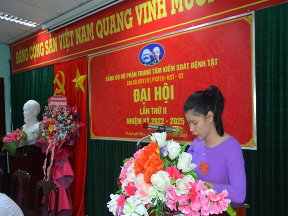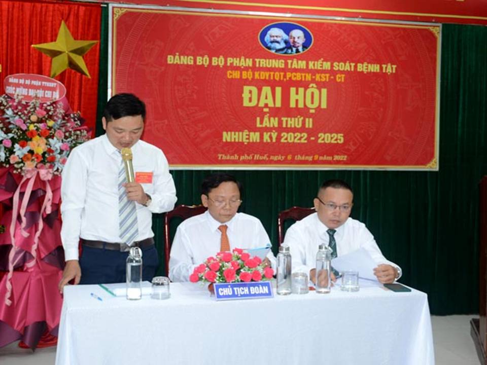Phát biểu chỉ đạo tại Đại hội, đồng chí Hồ Xuân Vũ, Ủy viên BCH Đảng bộ bộ phận, Phó GĐ TTKSBT đã ghi nhận những thành tích mà Chi bộ đã đạt được trong nhiệm kỳ 2020-2022 và đánh giá cao việc lãnh chỉ đạo của Cấp ủy trong suốt nhiệm kỳ. Đồng chí đề nghị cần phải nâng cao năng lực lãnh đạo, sức chiến đấu của Chi bộ và sức mạnh đoàn kết để không ngừng nâng cao chất lượng hoạt động các chương trình, công tác chăm sóc sức khỏe nhân dân, tham gia kiểm soát tình hình dịch bệnh Covid-19, dịch bênh Đậu mùa khỉ đang diễn biến khó lường.