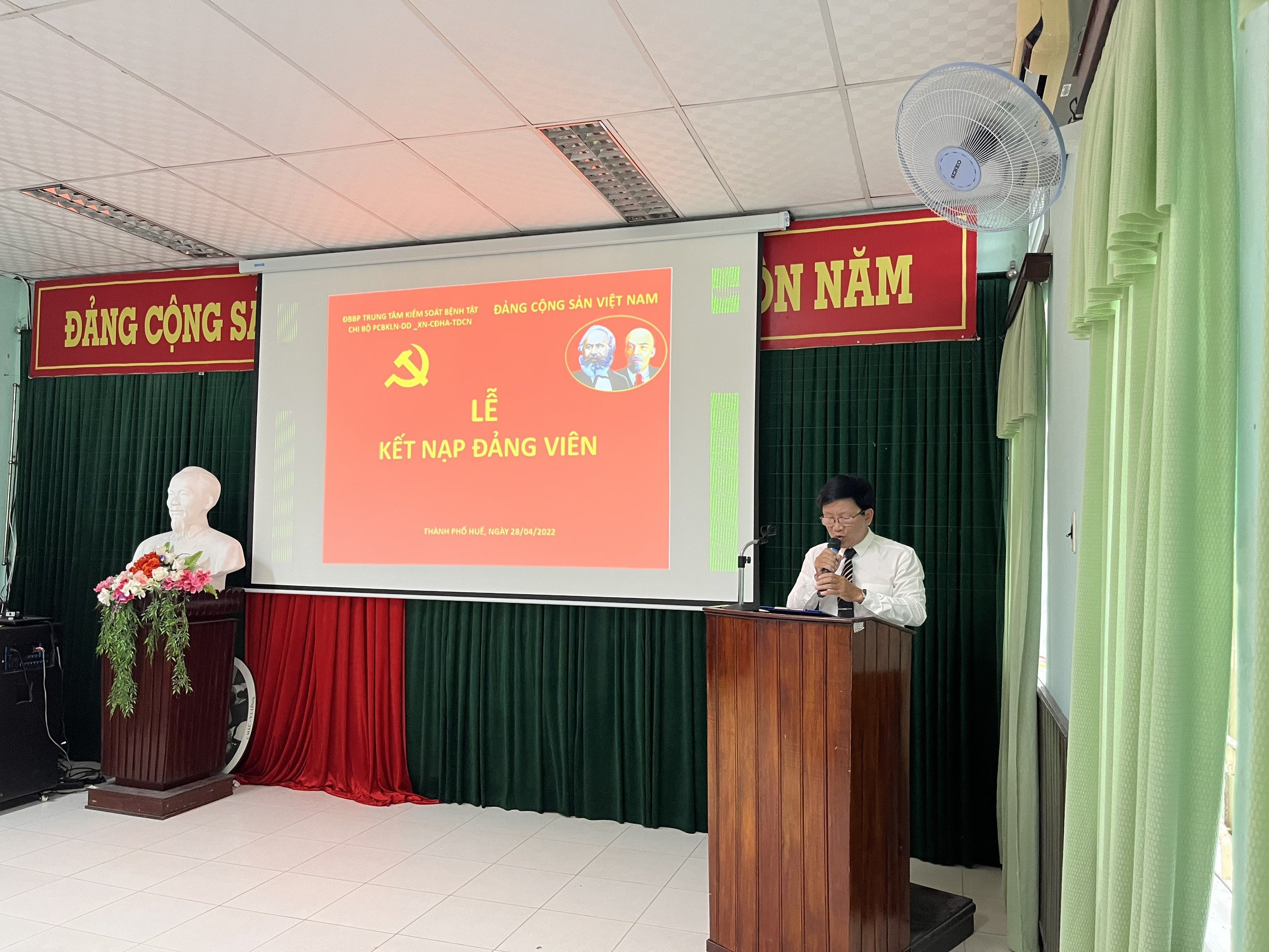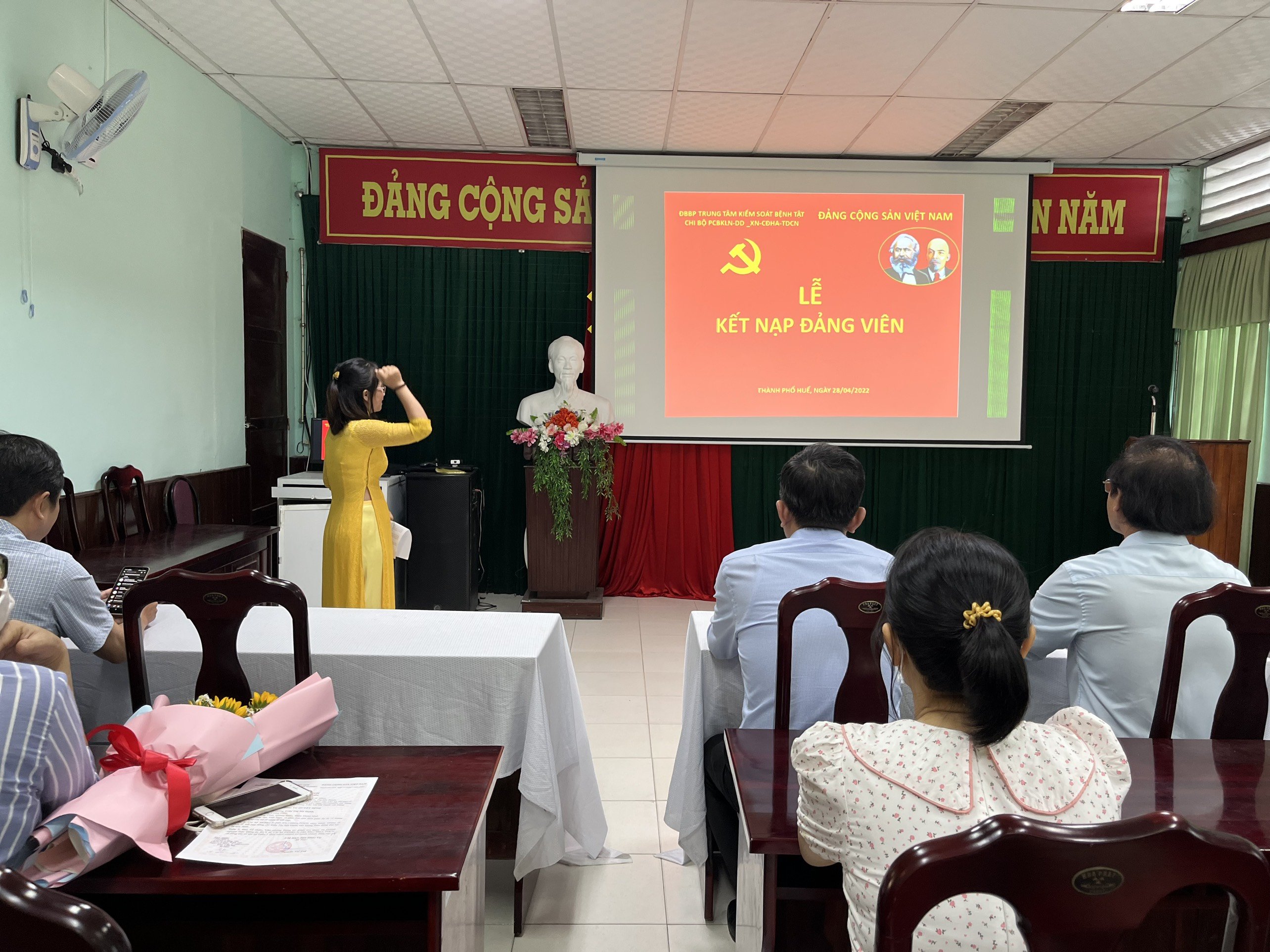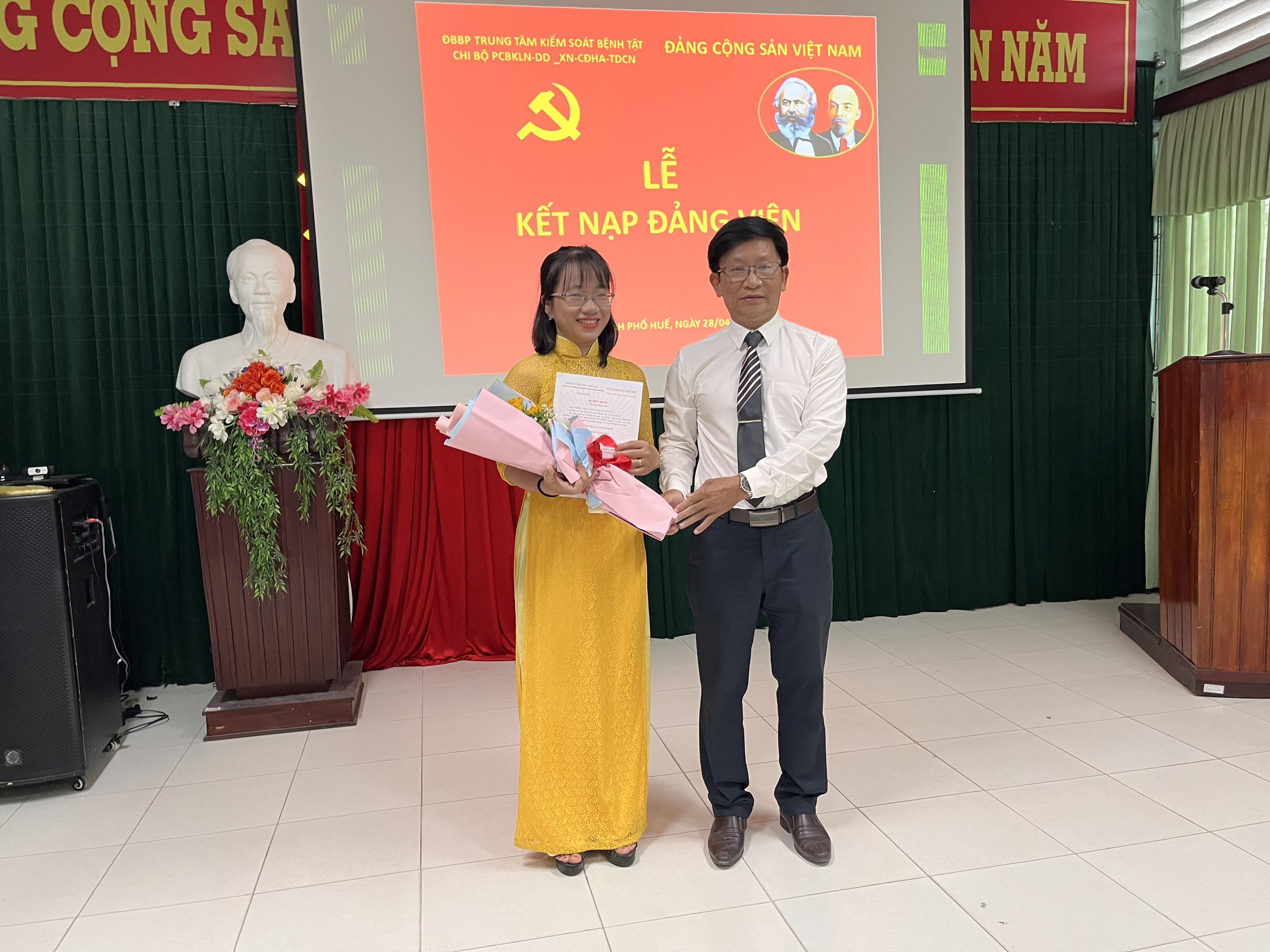 Hòa chung không khí tưng bừng của cả nước Chào mừng kỷ niệm 48 năm ngày giải phóng Miền Nam thống nhất đất nước (30/4/1975 – 30/4/2022) và ngày Quốc tế Lao động 01/05. Thực hiện Quyết định số 65-QĐ/ĐKU ngày 18 tháng 4 năm 2022 của Đảng Ủy khối cơ quan và Doanh nghiệp tỉnh về việc Kết nạp đảng viên. Chiều 28 tháng 4 năm 2022, Chi bộ PCBKLN-DD-XN,CĐHA,TDCN thuộc Đảng bộ bộ phận Trung tâm KSBT đã tổ chức Lễ kết nạp đảng viên. Quần chúng Trần Thị Mỹ Hạnh, công tác tại khoa PCBKLN-DD được kết nạp vào Đảng cộng sản Việt Nam và sinh hoạt tại Chi bộ PCBKLN-DD-XN,CĐHA,TDCN.