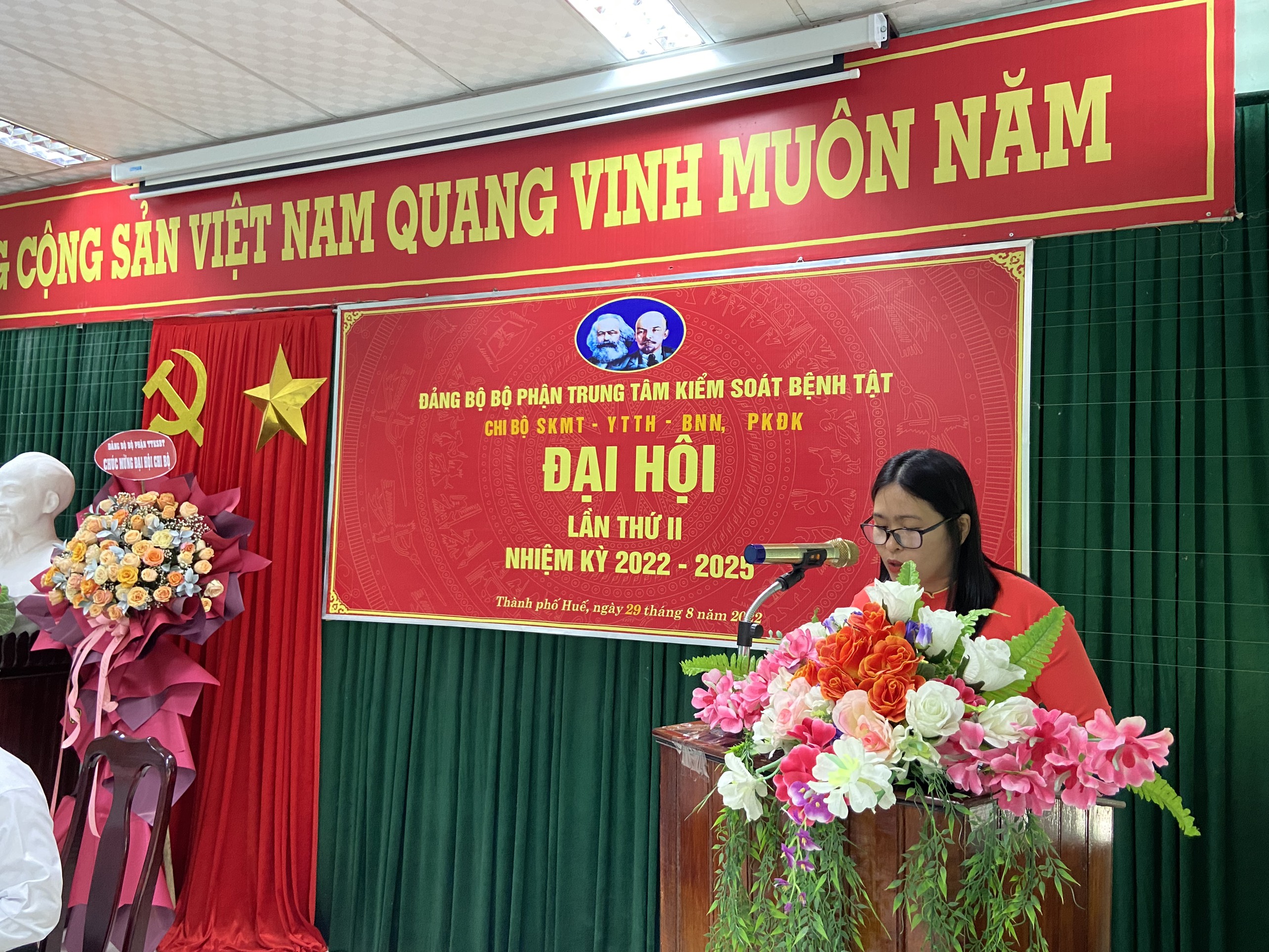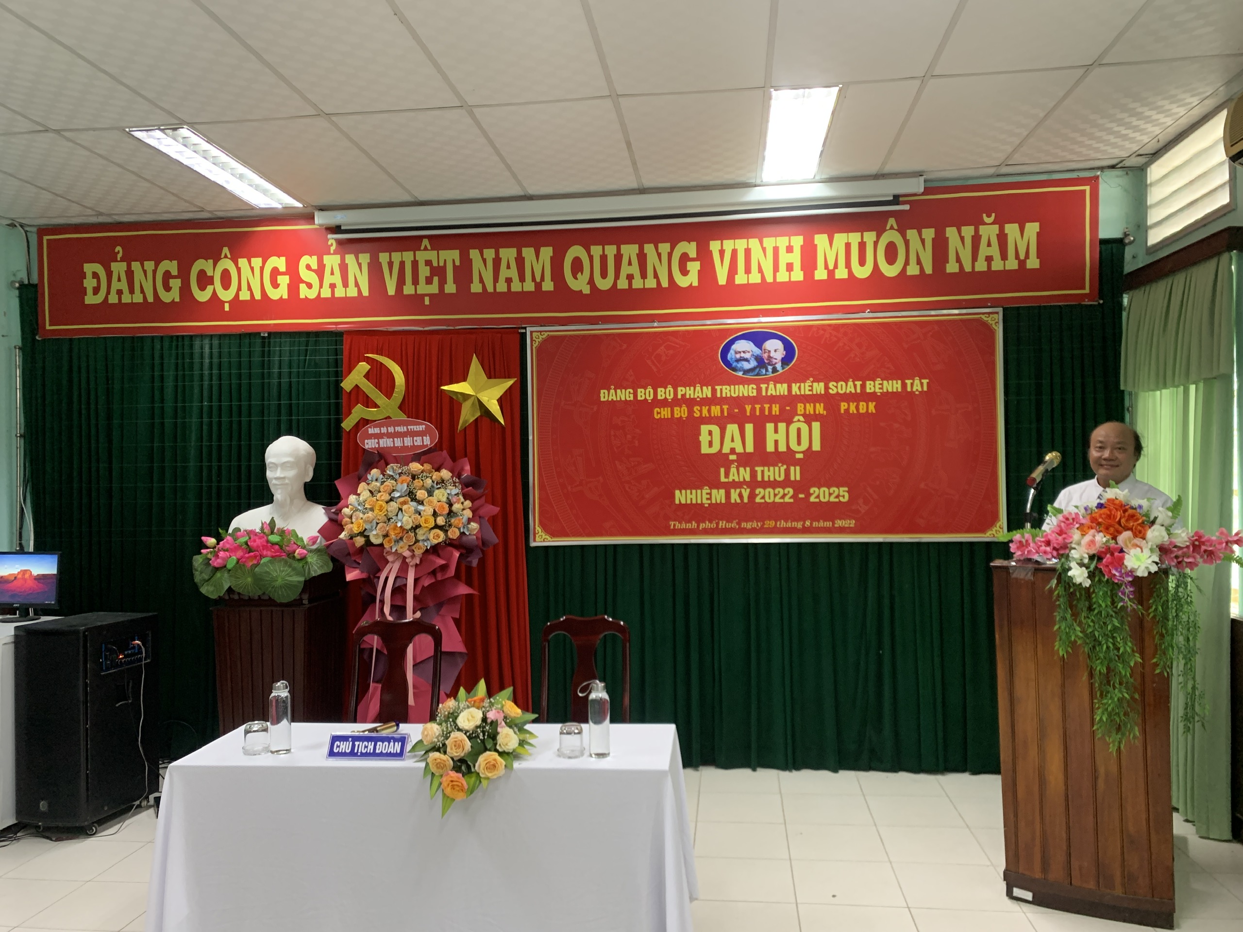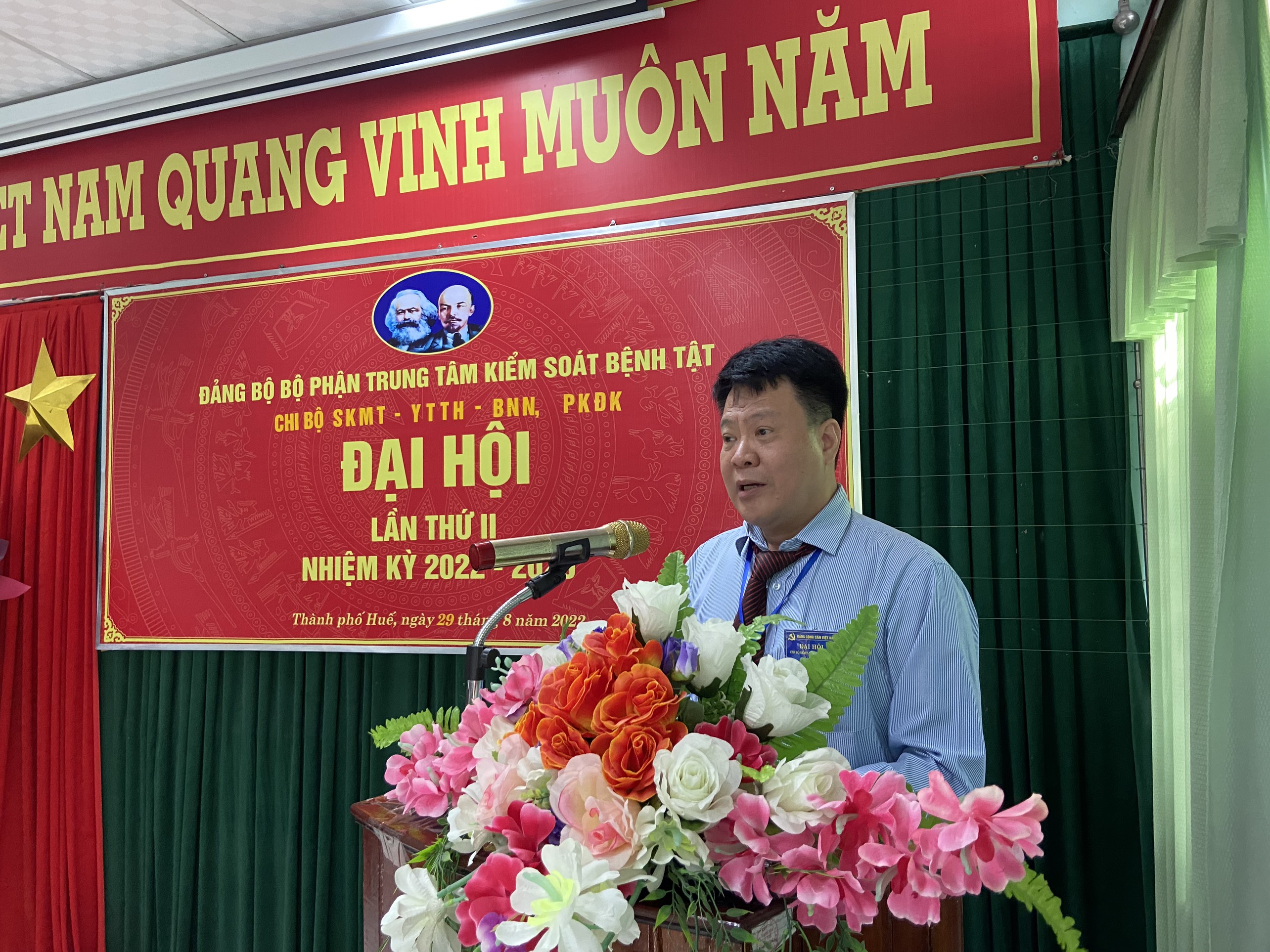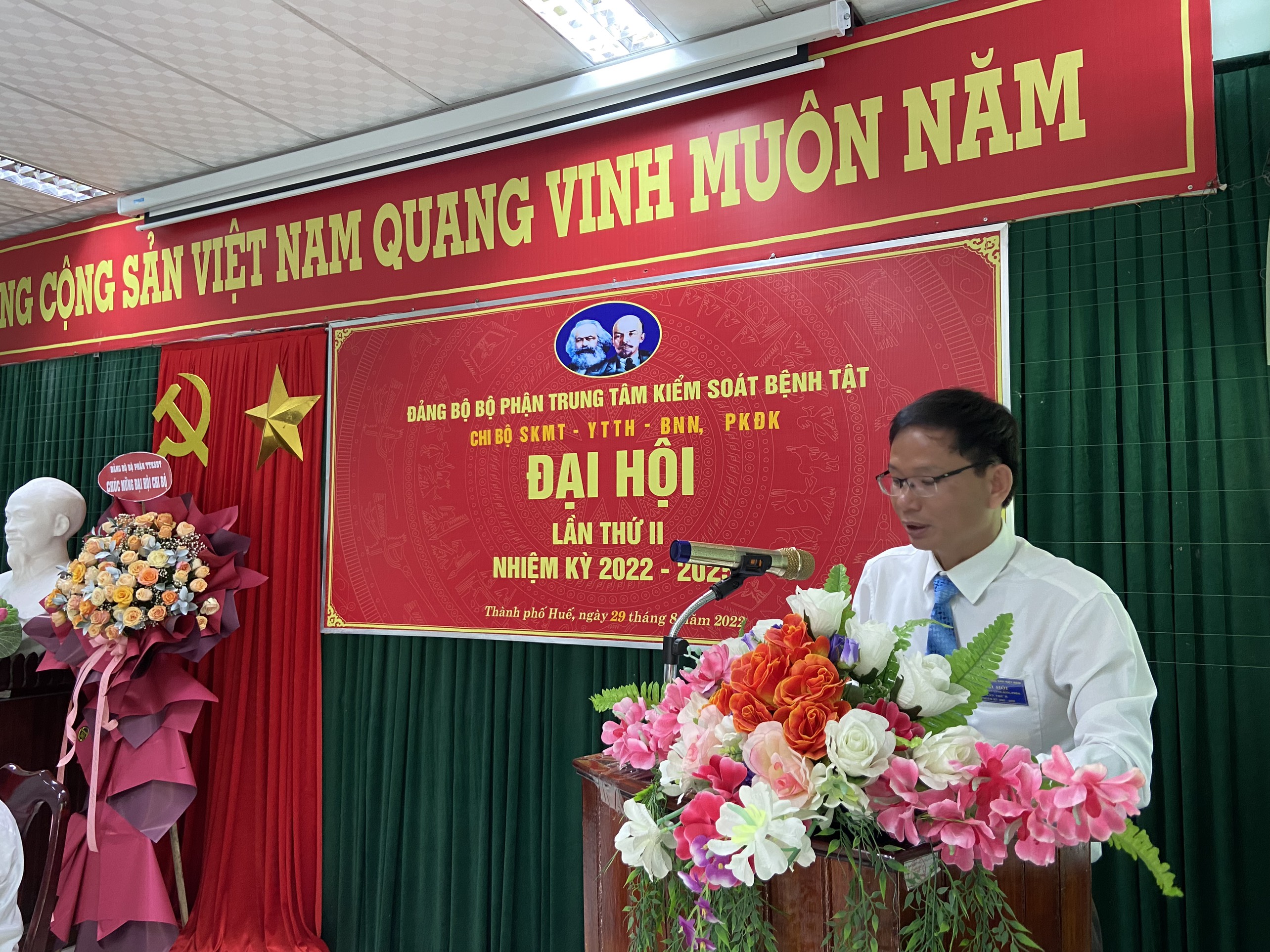 Phát biểu chỉ đạo Đại hội, đồng chí Hoàng Trọng Quý, Ủy viên thường vụ Đảng ủy-Phó Giám đốc Sở Y tế tỉnh Thừa Thiên Huế đã ghi nhận những kết quả trong báo cáo chính trị của chi bộ nhiệm kỳ 2020-2022 và trong phương hướng nhiệm vụ nhiệm kỳ 2022- 2025 cần lưu ý thêm các chỉ tiêu và chỉ số cụ thể. Đồng chí Hồ Xuân Vũ-Đảng ủy viên Đảng bộ bộ phận- Phó Giám đốc Trung tâm Kiểm soát bệnh tật tỉnh kêu gọi các Đảng viên trong chi bộ luôn nêu cao tinh thần đoàn kết, trách nhiệm trong công việc để thực hiện công tác chăm sóc sức khỏe cho nhân dân được Đảng, Nhà nước và Nhân dân giao phó.