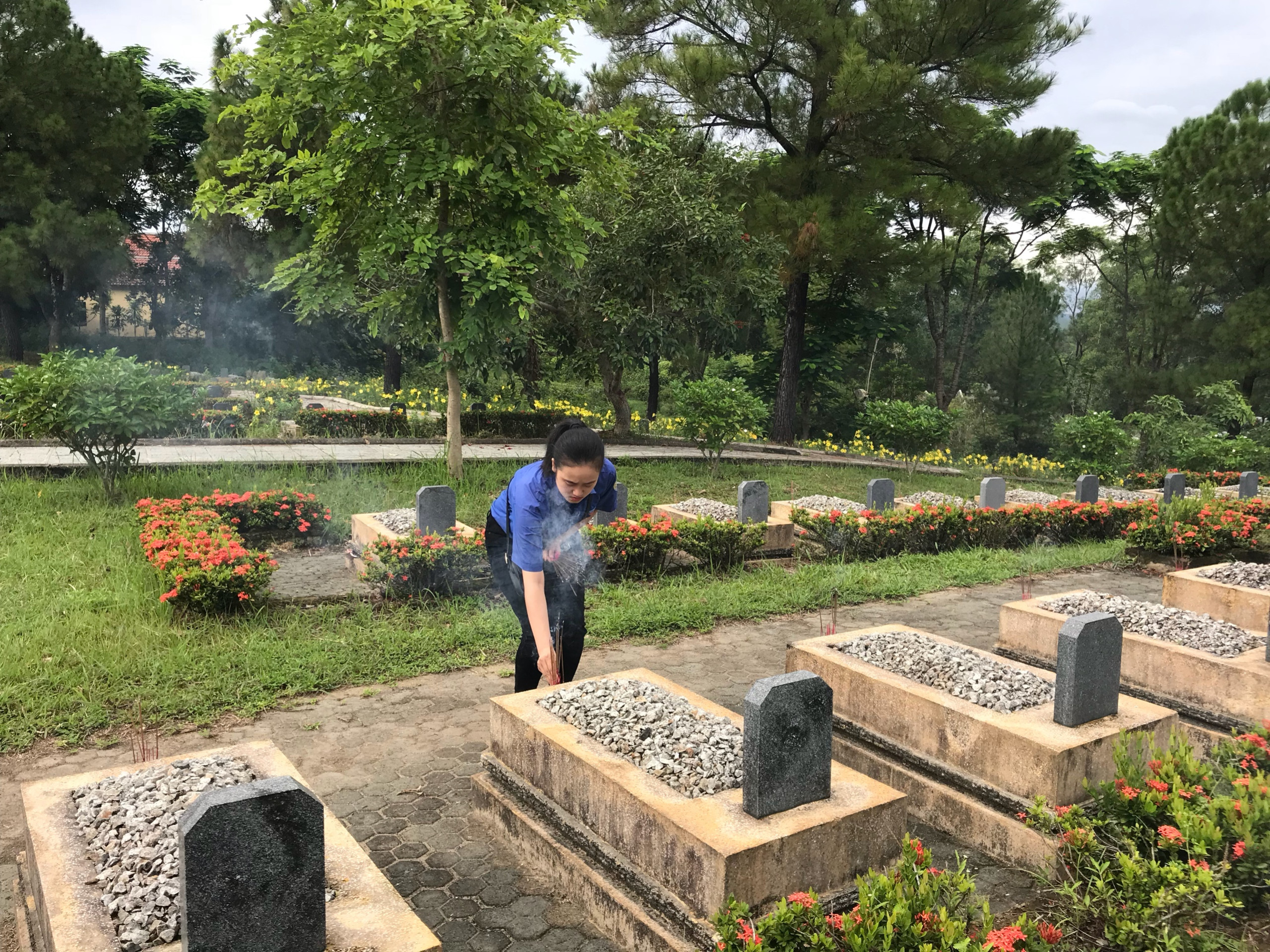 Chi đoàn thanh niên Trung tâm Kiểm soát bệnh tật tỉnh Thừa Thiên Huế dâng hương tại Nghĩa trang Liệt sĩ Thành phố Huế