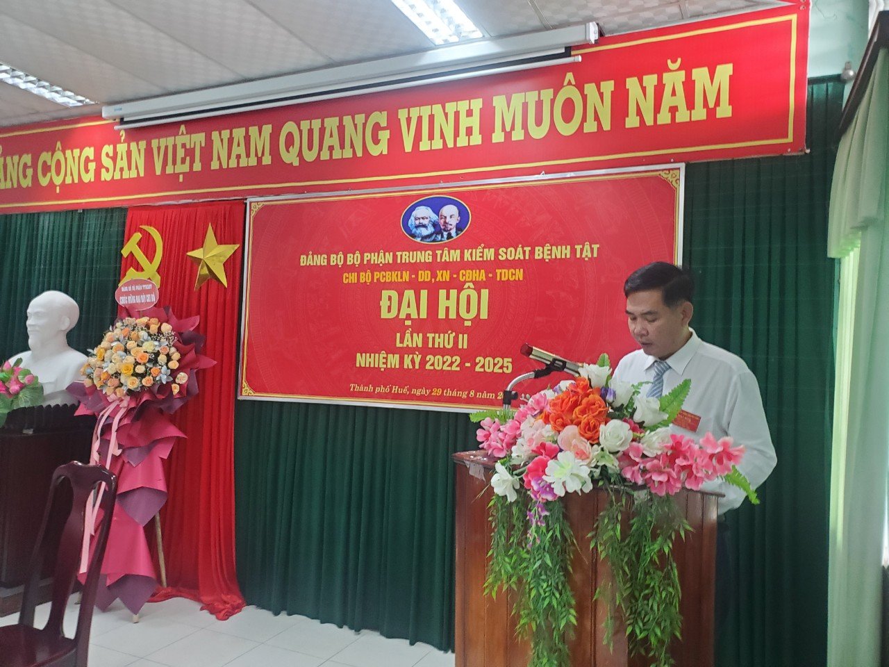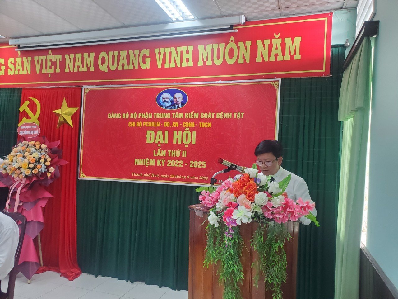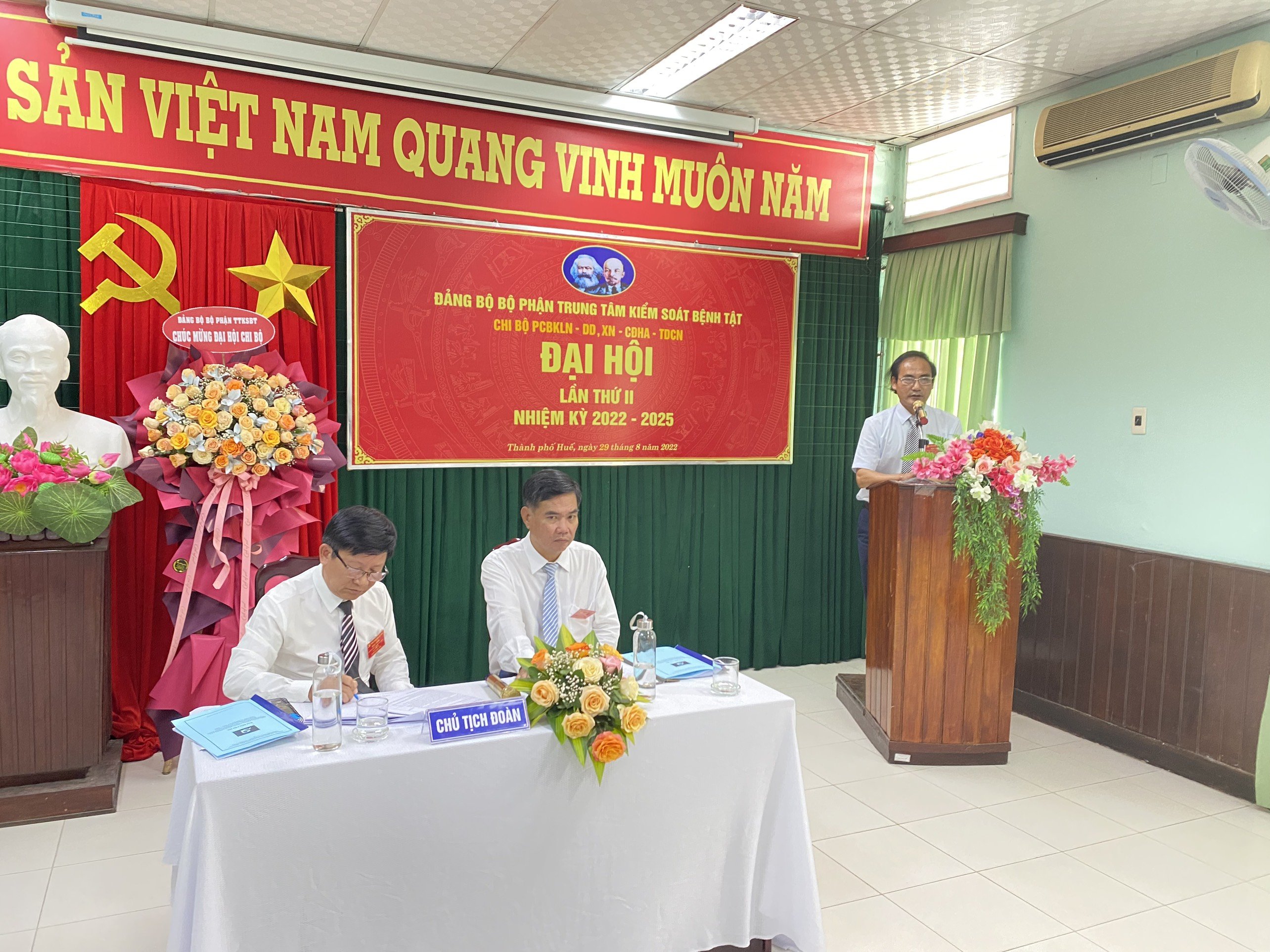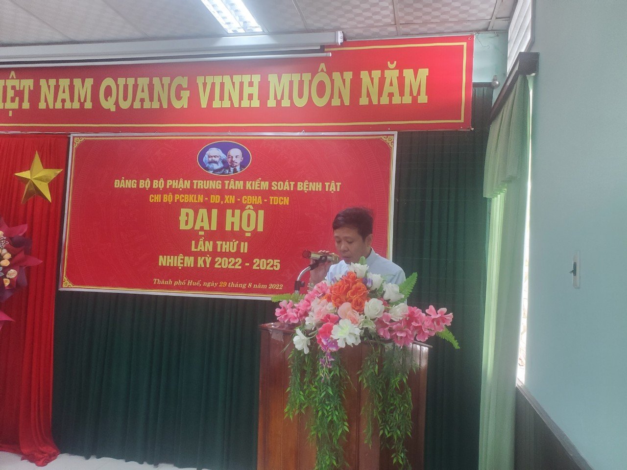 Sáng ngày 29/8/2022, Chi bộ Chi bộ liên khoa Phòng chống bệnh không lây nhiễm- Dinh dưỡng – Xét nghiệm- Chẩn đoán hình ảnh- Thăm dò chức năng thuộc Đảng bộ bộ phận Trung tâm Kiểm soát bệnh tật tỉnh Thừa Thiên Huế đã tổ chức Đại hội lần thứ II, nhiệm kỳ 2022 - 2025. Đến dự và chỉ đạo Đại hội có Đồng chí Hoàng Văn Thám- Đảng ủy viên ĐBBP, Phó Giám đốc Trung tâm Kiểm soát bệnh tật tỉnh và đồng chí Nguyễn Văn Quang- Đảng ủy viên ĐBBP, phó trưởng phòng KHTC tham dự và chỉ đạo Đại hội.