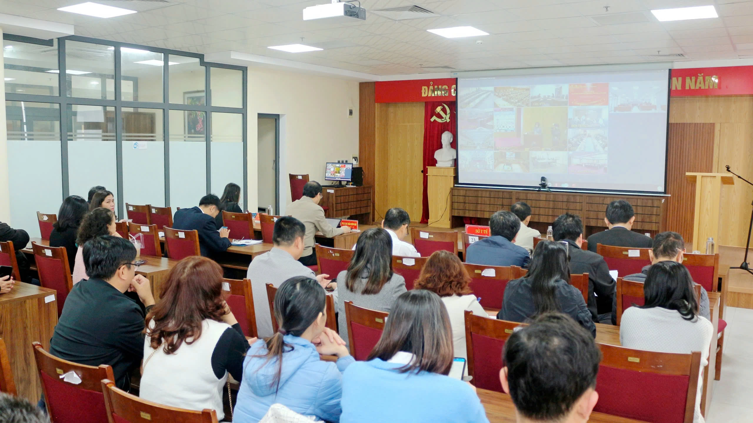 Các đại biểu tham dự hội nghị trực tuyến tại điểm cầu Sở Y tế thành phố Huế.