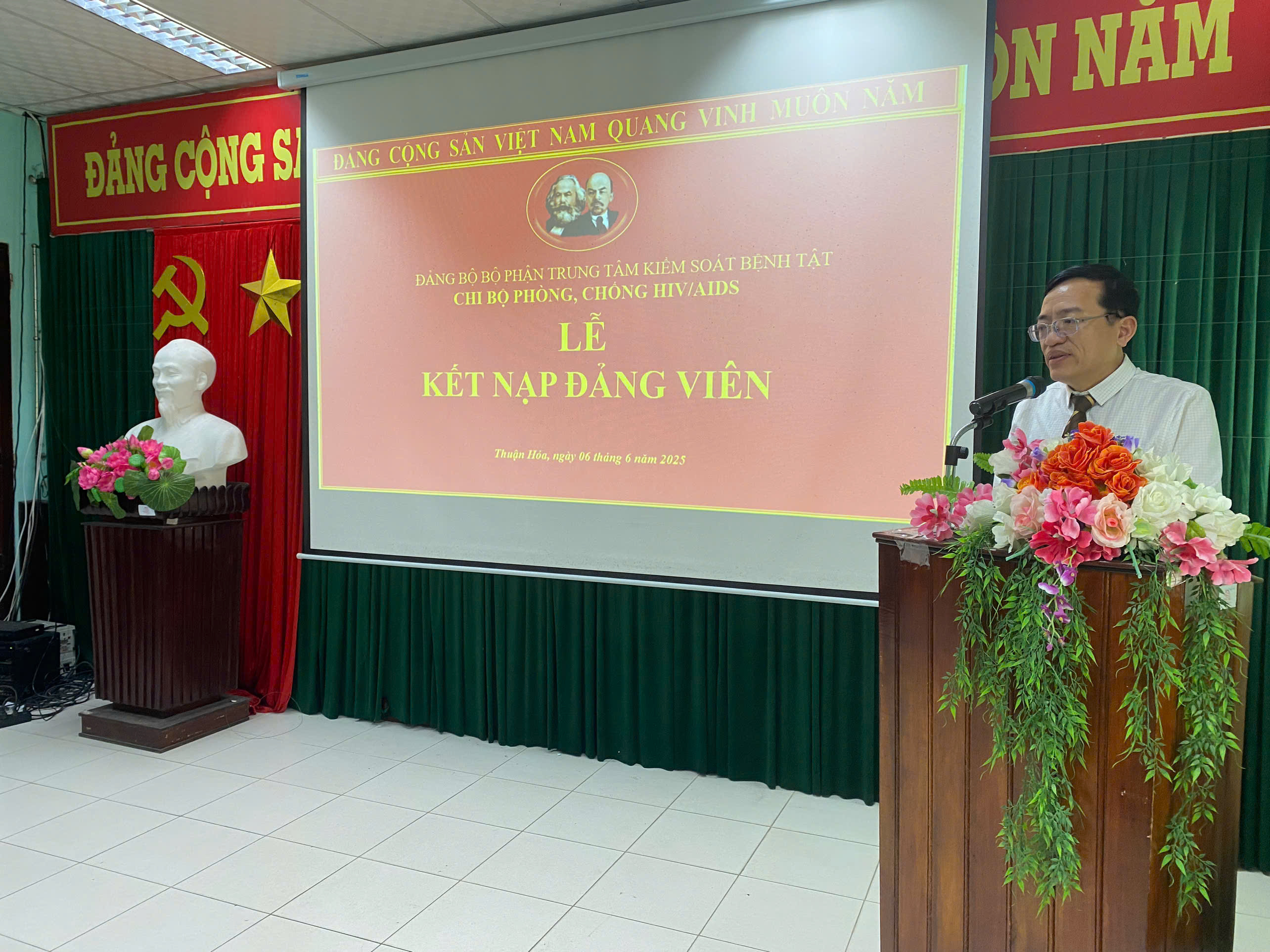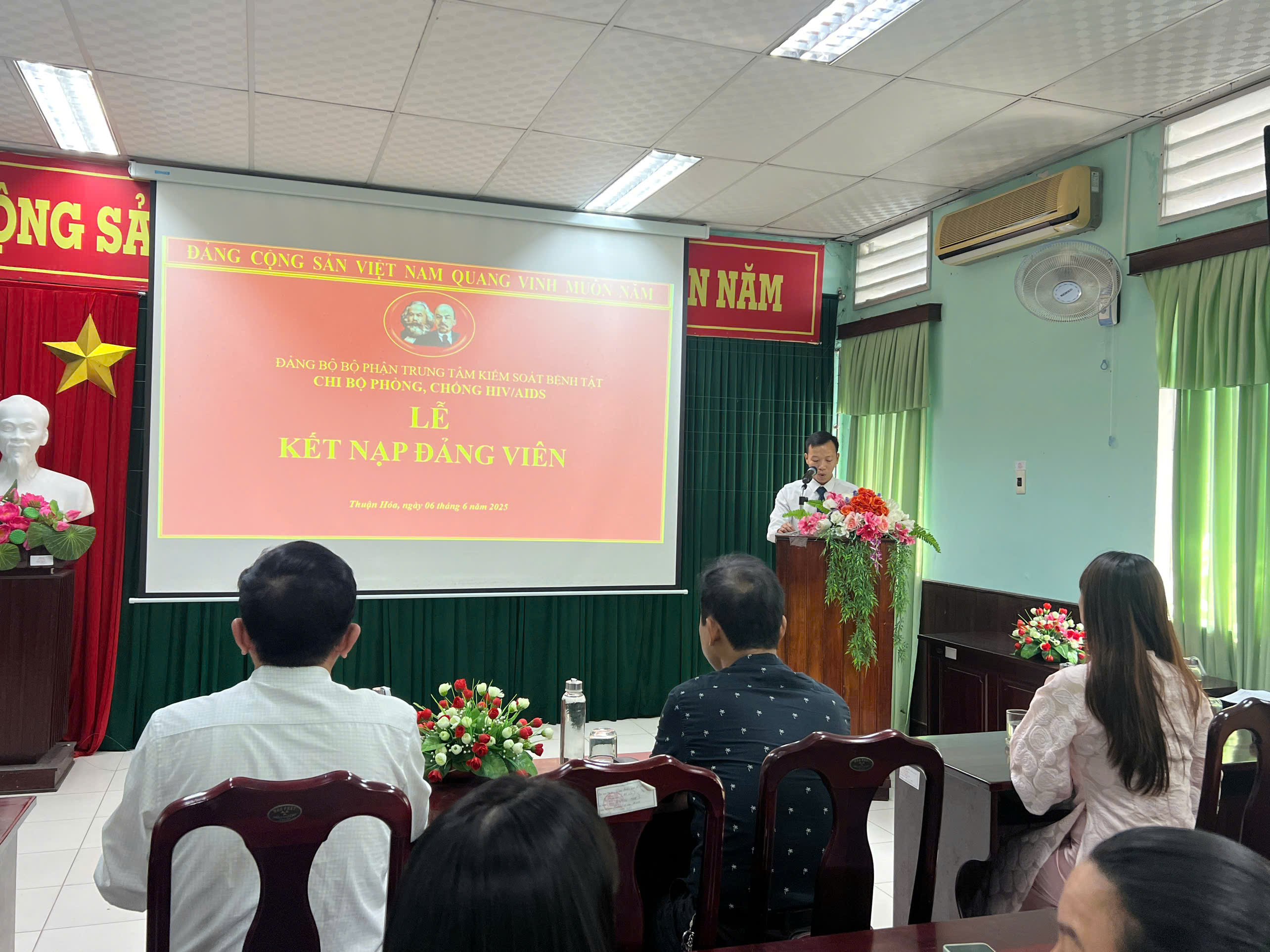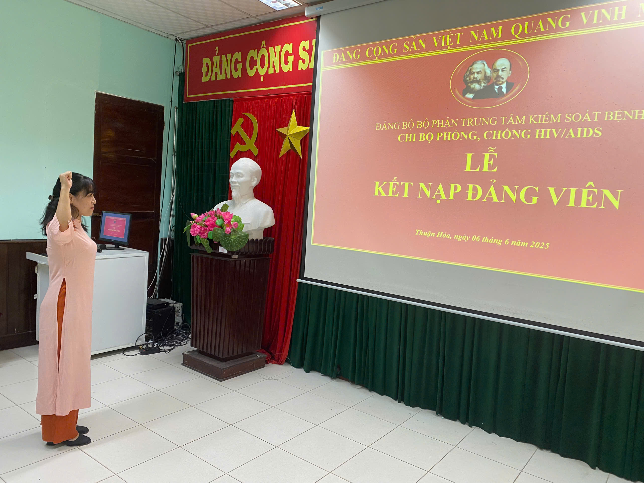 Chiều ngày 06/6/2025, Chi bộ phòng, chống HIV/AIDS đã long trọng tổ chức lễ kết nạp đảng viên mới cho quần chúng ưu tú Phạm Thị Mỹ Hạnh. Đồng chí Nguyễn Lê Tâm – Phó Bí thư Đảng bộ Bộ phận, Phó Giám đốc phụ trách Trung tâm; đại diện Ban chấp hành ĐBBP, cùng toàn thể đảng viên Chi bộ phòng, chống HIV/AIDS tham dự lễ kết nạp.