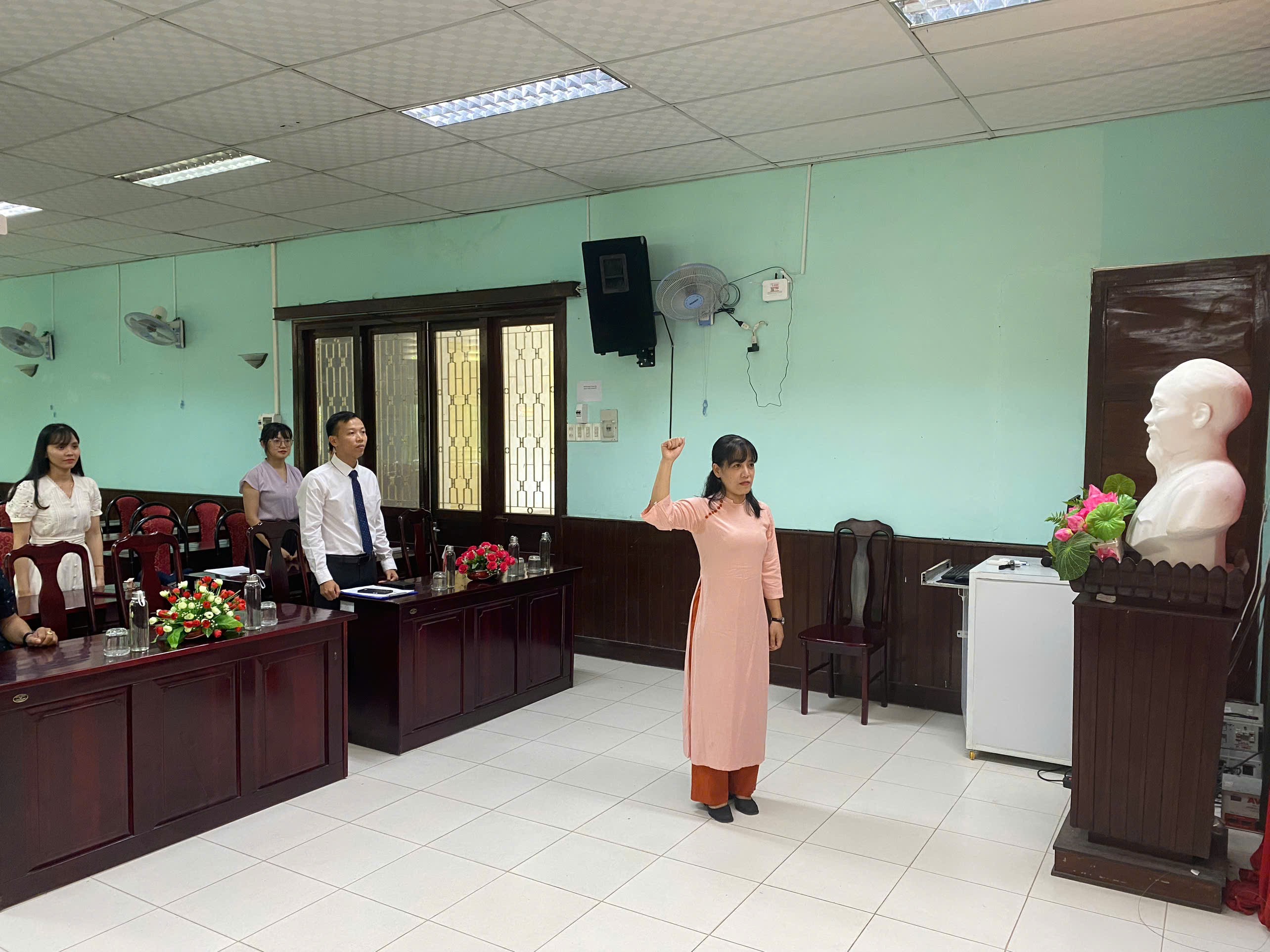 Trong không khí trang nghiêm khi nhận Quyết định kết nạp Đảng viên từ đồng chí Bí thư Chi bộ, dưới cờ Tổ quốc, cờ Đảng và chân dung Chủ tịch Hồ Chí Minh, cùng sự chứng kiến của Chi bộ, các đảng viên và các đại biểu, đồng chí Phạm Thị Mỹ Hạnh – Đảng viên mới đã đọc lời tuyên thệ của đảng viên Đảng Cộng sản Việt Nam, nguyện quyết tâm phấn đấu để luôn xứng đáng là người đảng viên gương mẫu, đóng góp sức mình thực hiện thành công nhiệm vụ chính trị của Chi bộ, góp phần xây dựng Chi bộ, ĐBBP Trung tâm ngày càng vững mạnh.