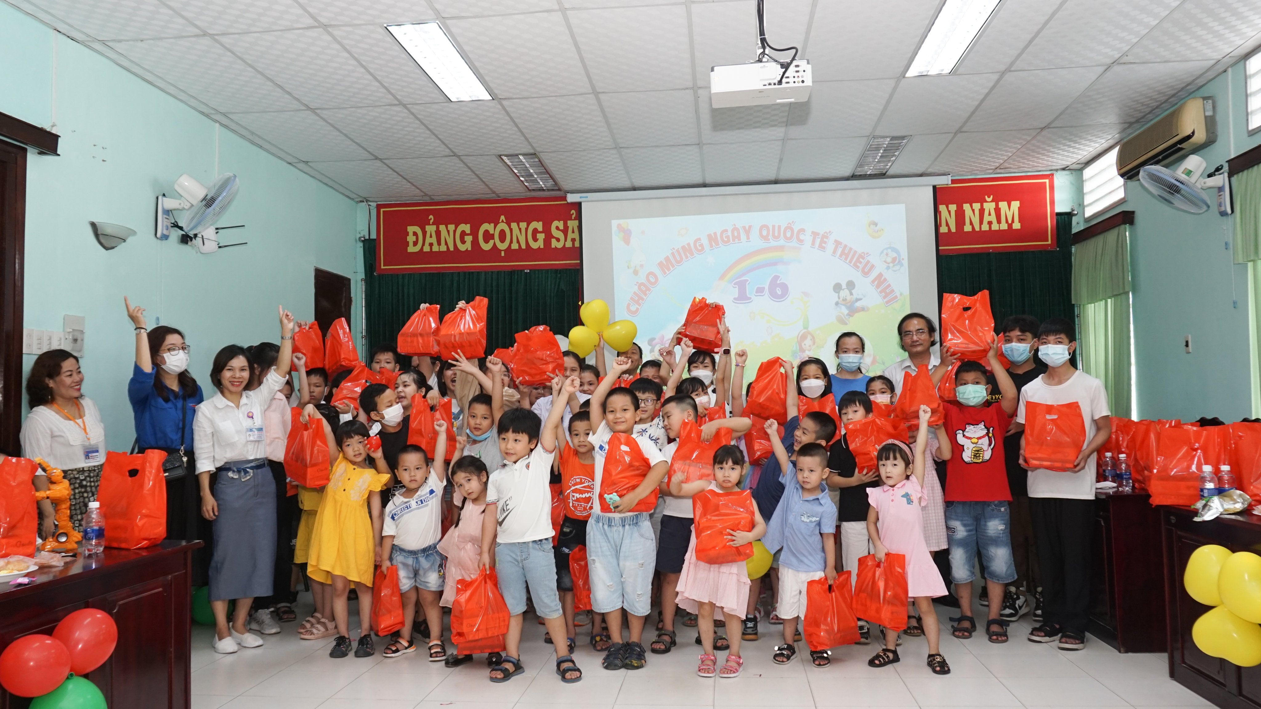 Đại diên Ban lãnh đạo, BS CKII Hoàng Văn Thám – Phó Giám đốc Trung tâm KSBT đã tặng các phần quà 01/06 cho các em Thiếu nhi. Phần quà không lớn lao nhưng có thể cảm nhận được niềm vui, sự hạnh phúc trên khuôn mặt của các em nhỏ.