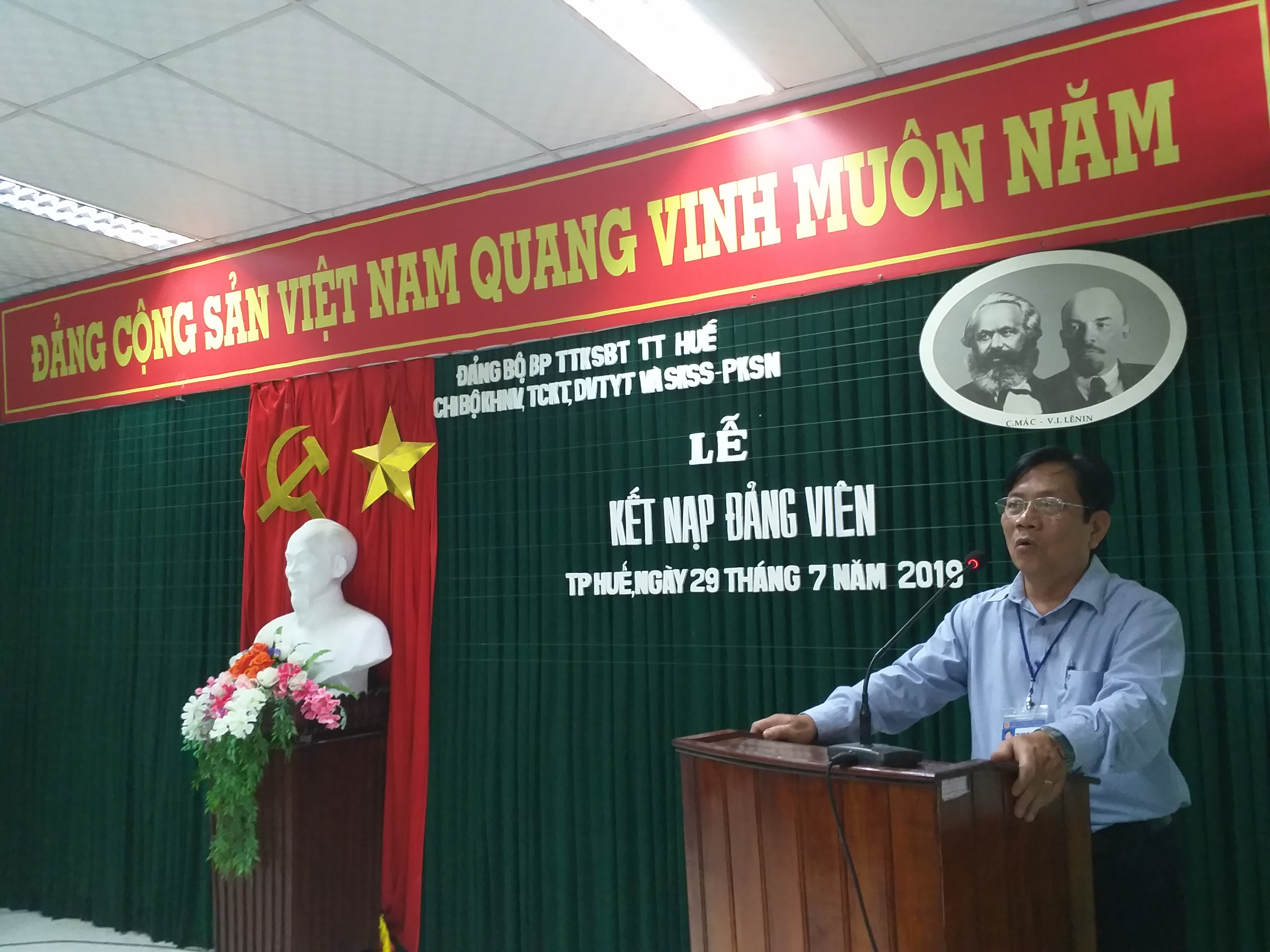 Với tinh thần chỉ đạo của cấp ủy đảng cấp trên, Chi bộ phòng KHNV, Tài chính kế toán, Dược VTYT và Chi bộ khoa SKSS-PKSN đã chỉ đạo tổ chức nhiều phong trào thi đua, lập thành tích trong thực hiện nhiệm vụ và luôn tích cực bồi dưỡng, giúp đỡ các quần chúng ưu tú để kết nạp vào Đảng. Qua thời gian tích cực phấn đấu của quần chúng Hồ Diệu Thương và quần chúng Trần Thị Diệu Trang, với sự giáo dục, giúp đỡ của Chi bộ, 02 quần chúng đã tự khẳng định được năng lực và tự nguyện xin vào Đảng CSVN. Chiều ngày 29/7/2019 Chi bộ phòng KHNV, TCKT, DVTYT và khoa SKSS-PKSN tiến hành tổ chức Lễ kết nạp đảng viên cho 02 đồng chí Hồ Diệu Thương và Trần Thị Diệu Trang. Đến dự Lễ kết nạp đảng viên có: Đồng chí Nguyễn Đình Sơn, đảng ủy viên đảng bộ SYT, Bí thư đảng bộ bộ phận, phó GĐ phụ trách TTKSBT, các đ/c trong BCH đảng ủy bộ phận và các đ/c cấp ủy Chi bộ và toàn thể đảng viên, cán bộ viên chức của phòng KHNV, Phòng TCKT, khoa Dược VTYT và khoa SKSS-PKSN. Lễ kết nạp được tổ chức long trọng và thành công.