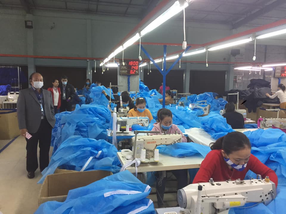 Công nhân may công nghiệp đeo khẩu trang trong quá trình làm việc