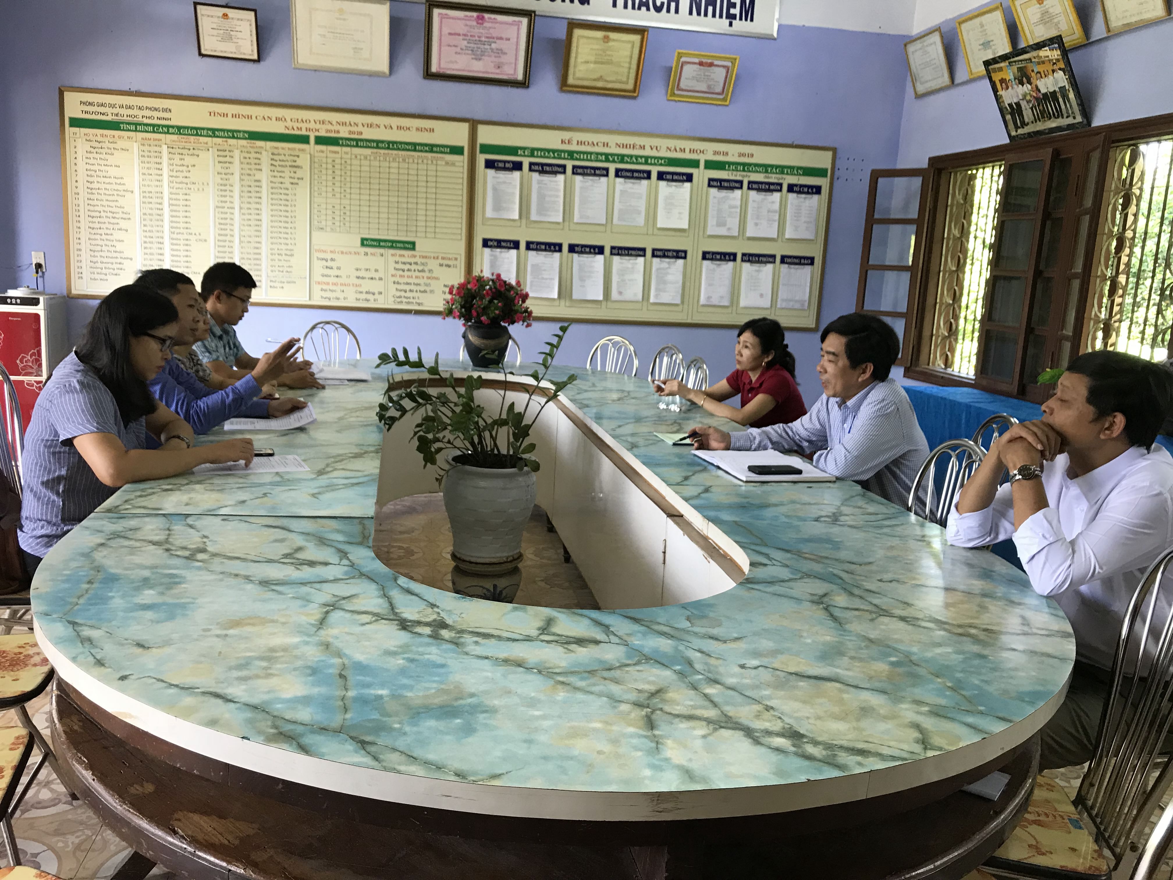 Làm việc cùng với lãnh đạo Trường tiểu học Phò Ninh, xã Phong An, huyện Phong Điền