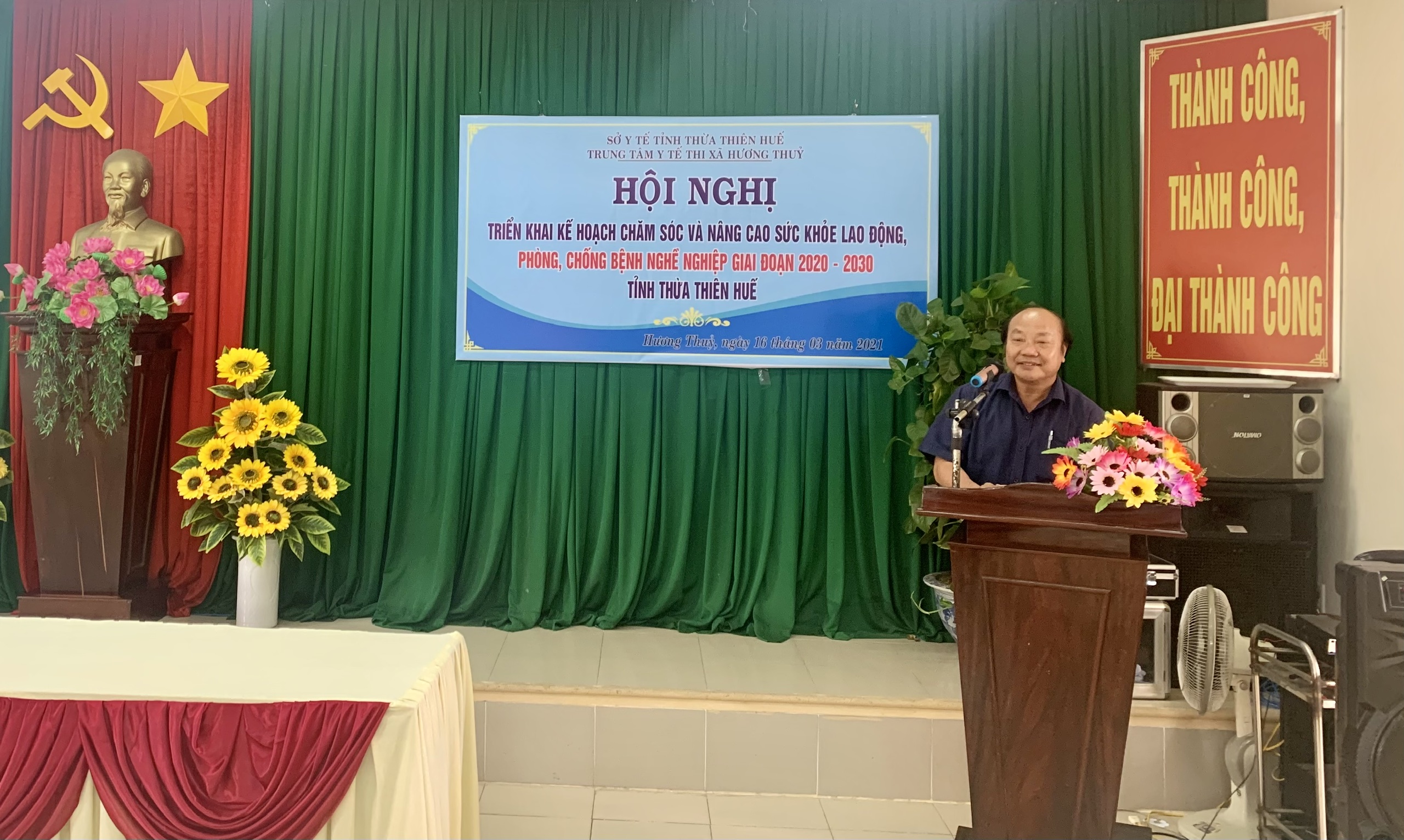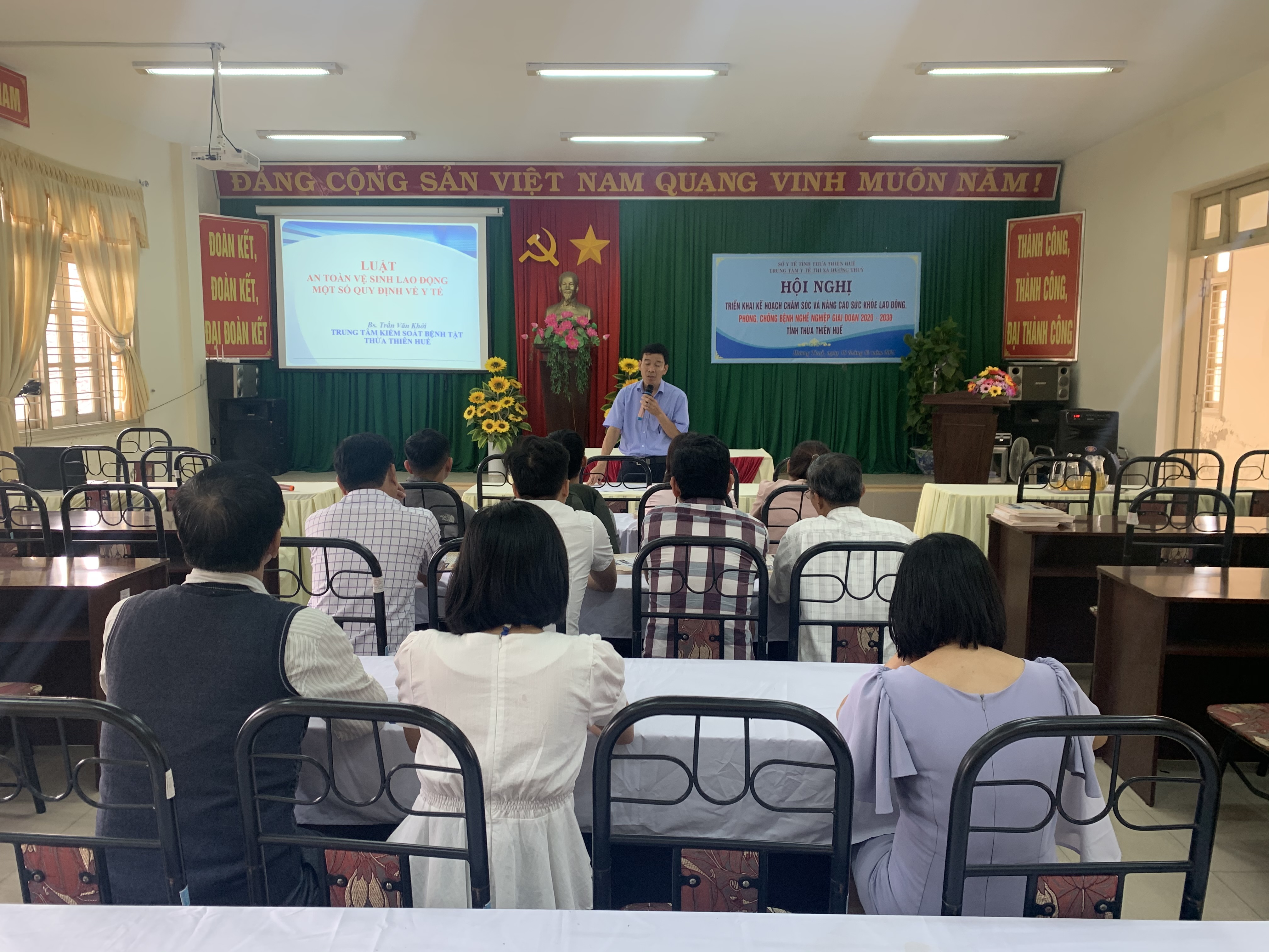 Thực hiện Kế hoạch số 220/KH-UB ngày 09 tháng 10 năm 2020 của Ủy Ban Nhân dân tỉnh Thừa Thiên Huế về Kế hoạch Chăm sóc và nâng cao sức khỏe người lao động, phòng, chống bệnh nghề nghiệp giai đoạn 2020-2030 tỉnh Thừa Thiên Huế. Kế hoạch hoạt động về Công tác chăm sóc sức khỏe người lao động, phòng chống bệnh nghề nghiệp năm 2021. Ngày 16 tháng 3 năm 2021 tại Phú Bài, Trung tâm Kiểm soát Bệnh tật tỉnh phối hợp với Trung tâm Y tế thị xã Hương Thủy tổ chức Hội nghị triển khai công tác Chăm sóc và nâng cao sức khỏe người lao động, phòng, chống bệnh nghề nghiệp năm 2021. Đông đủ các cán bộ chuyên trách về y tế lao động của 9 huyện, thị xã và thành phố Huế đã đến dự.