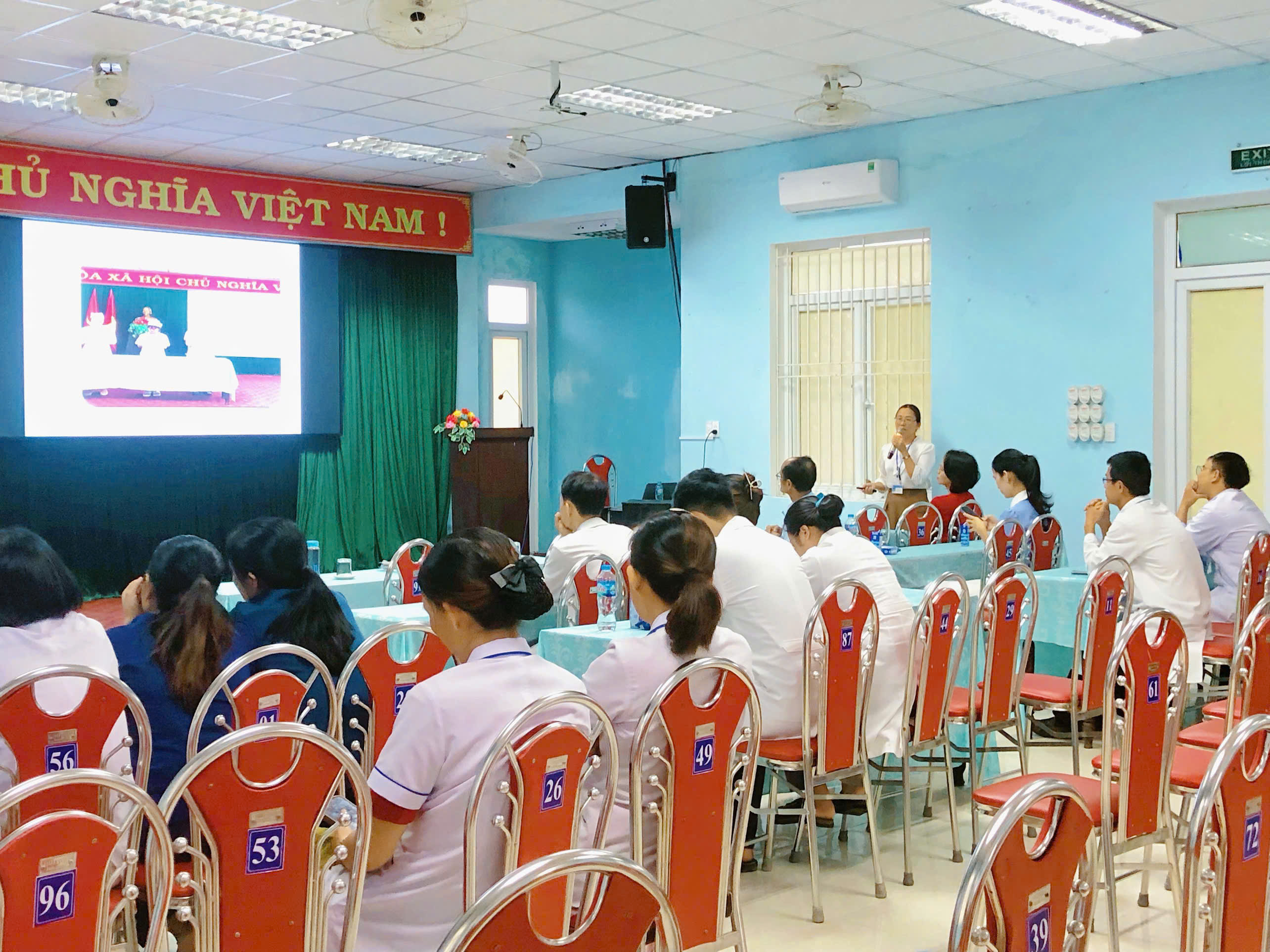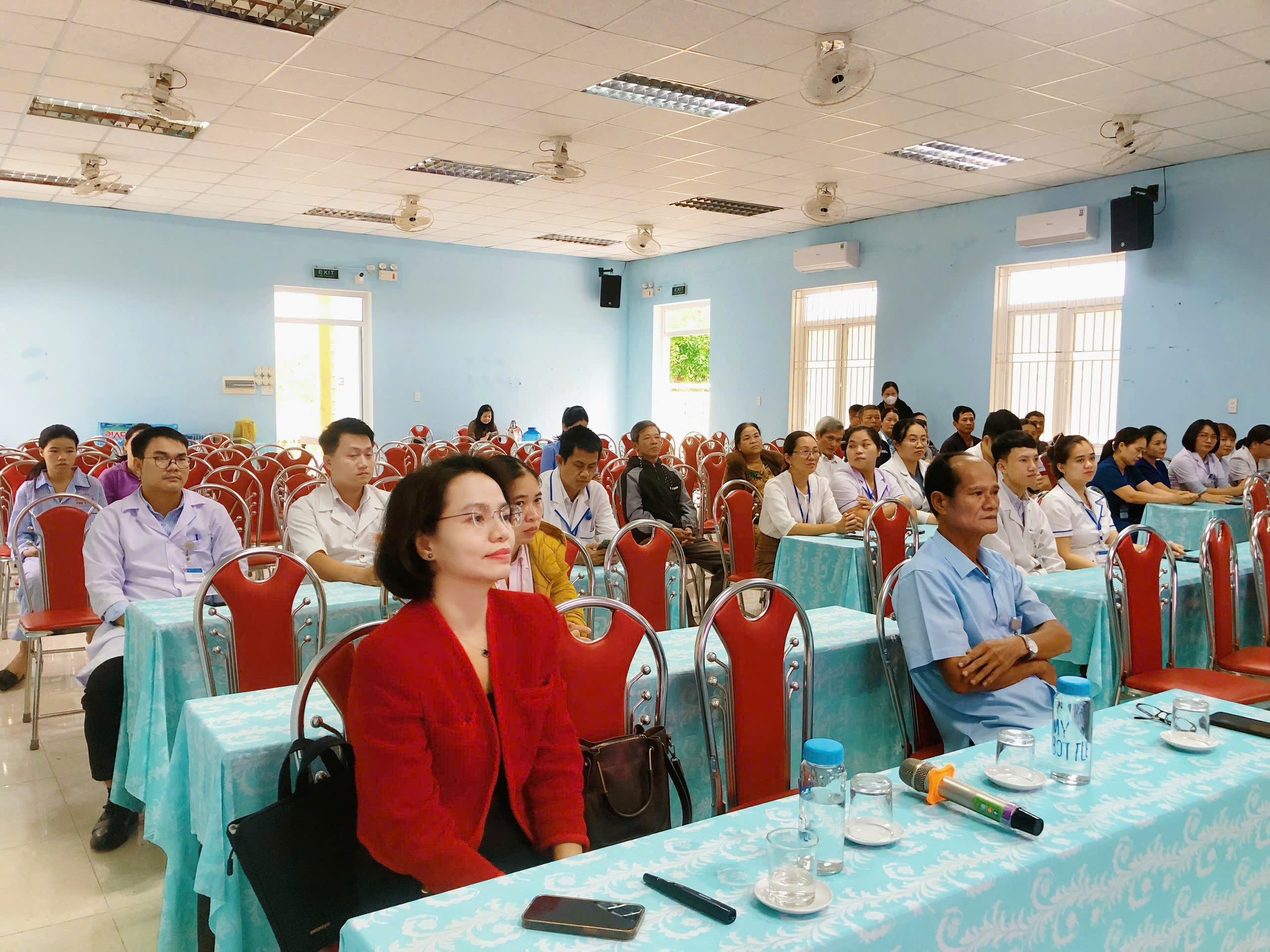 Tham dự hội thảo có BSCKI Đặng Văn Tuấn- Phó Giám đốc Trung Tâm Y tế Phú Vang, chuyên viên phòng Nghiệp vụ Dược Sở Y tế, chuyên viên khoa TTGDSK – Trung tâm Kiểm soát bệnh tật và 50 là cán bộ Y tế, bệnh nhân và người nhà bệnh nhân tại Trung tâm Y tế Phú Vang.