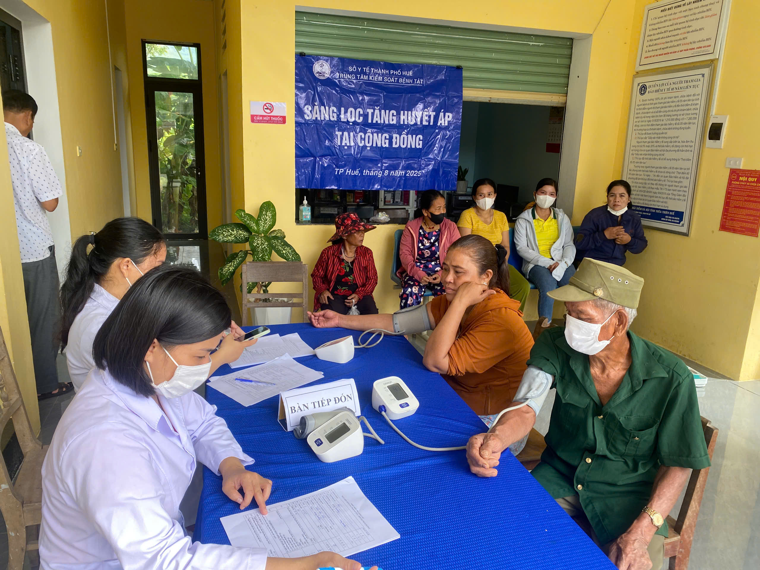 Thực hiện kế hoạch phòng chống bệnh Tăng huyết áp năm 2025, từ ngày 28/8 đến ngày 30/8/2025, Khoa Phòng chống bệnh không lây nhiễm – Dinh dưỡng (Trung tâm Kiểm soát bệnh tật thành phố) phối hợp với Trung tâm y tế Phú Lộc đã tổ chức điều tra yếu tố nguy cơ tim mạch, khám sàng lọc bệnh Tăng huyết áp cho 300 đối tượng có nguy cơ trên 40 tuổi tại xã Long Quảng với các bước tiến hành khám bao gồm: